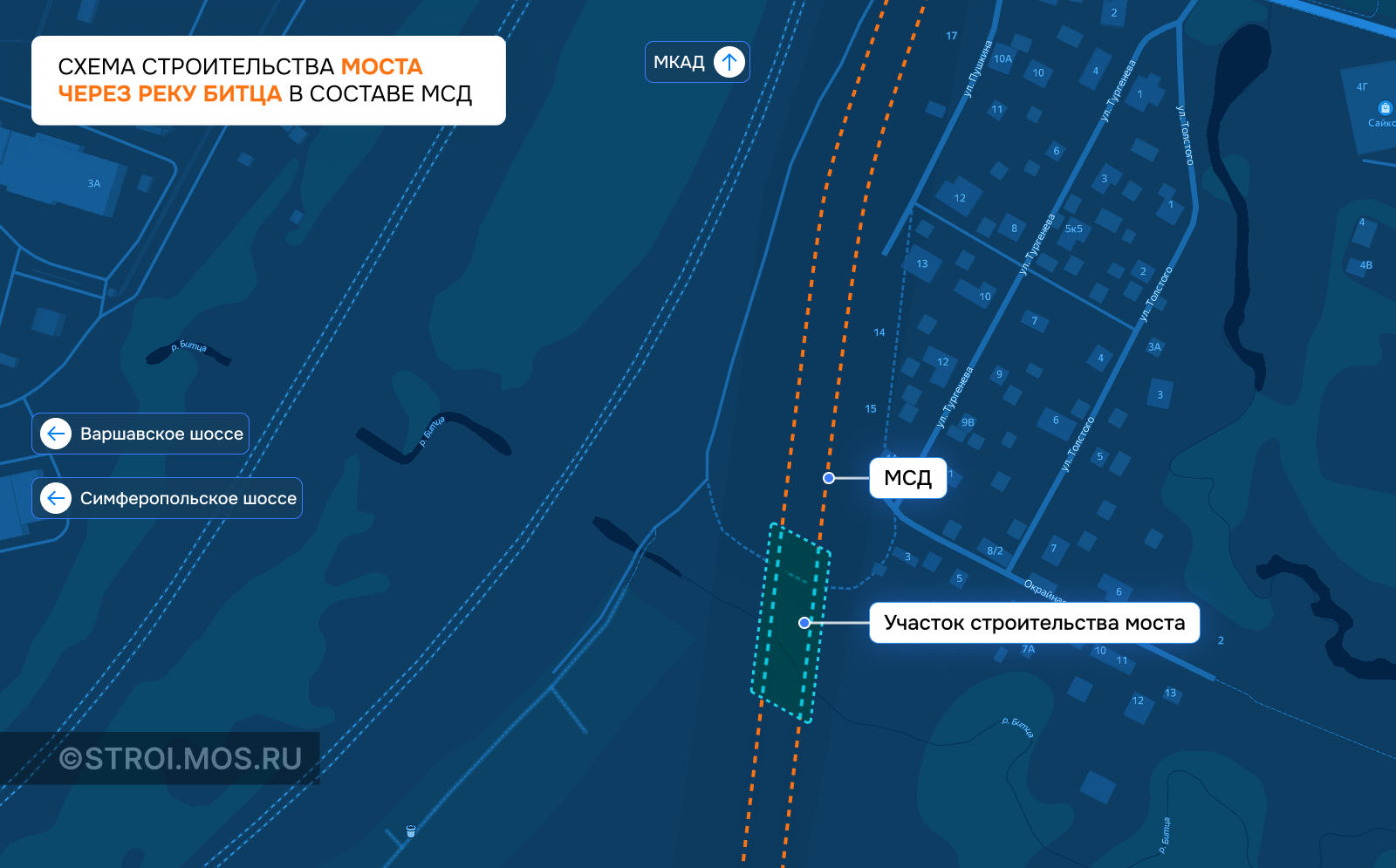 Как уточнил генеральный директор АО «Мосинжпроект» (генеральный проектировщик и генеральный подрядчик ряда участков МСД) Юрий Кравцов, на участке МСД от МКАД до автодороги Солнцево – Бутово – Варшавское шоссе еще несколько сооружений активно строятся.