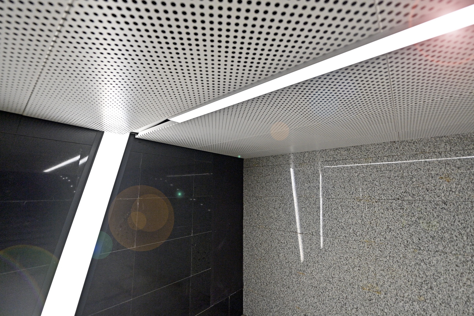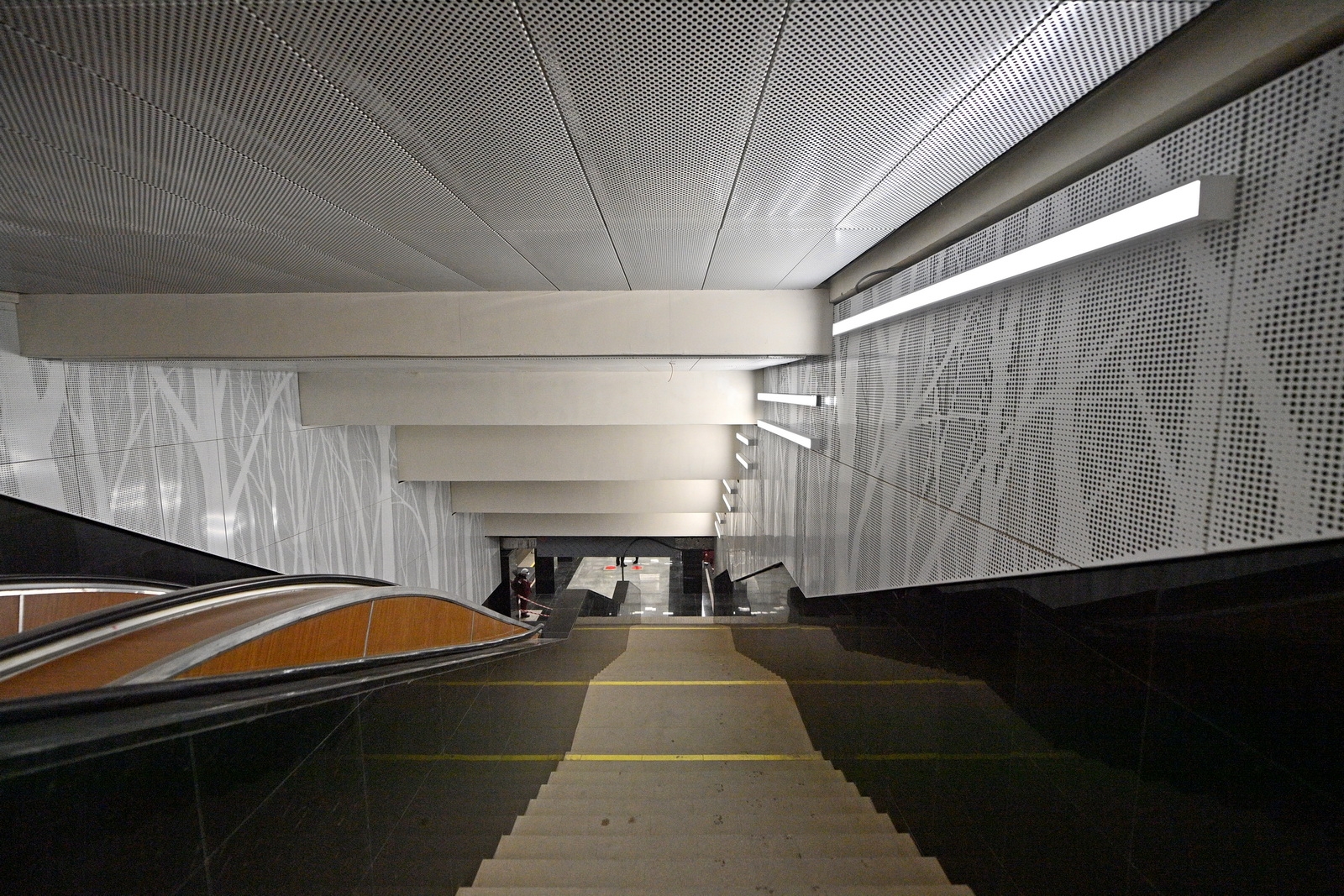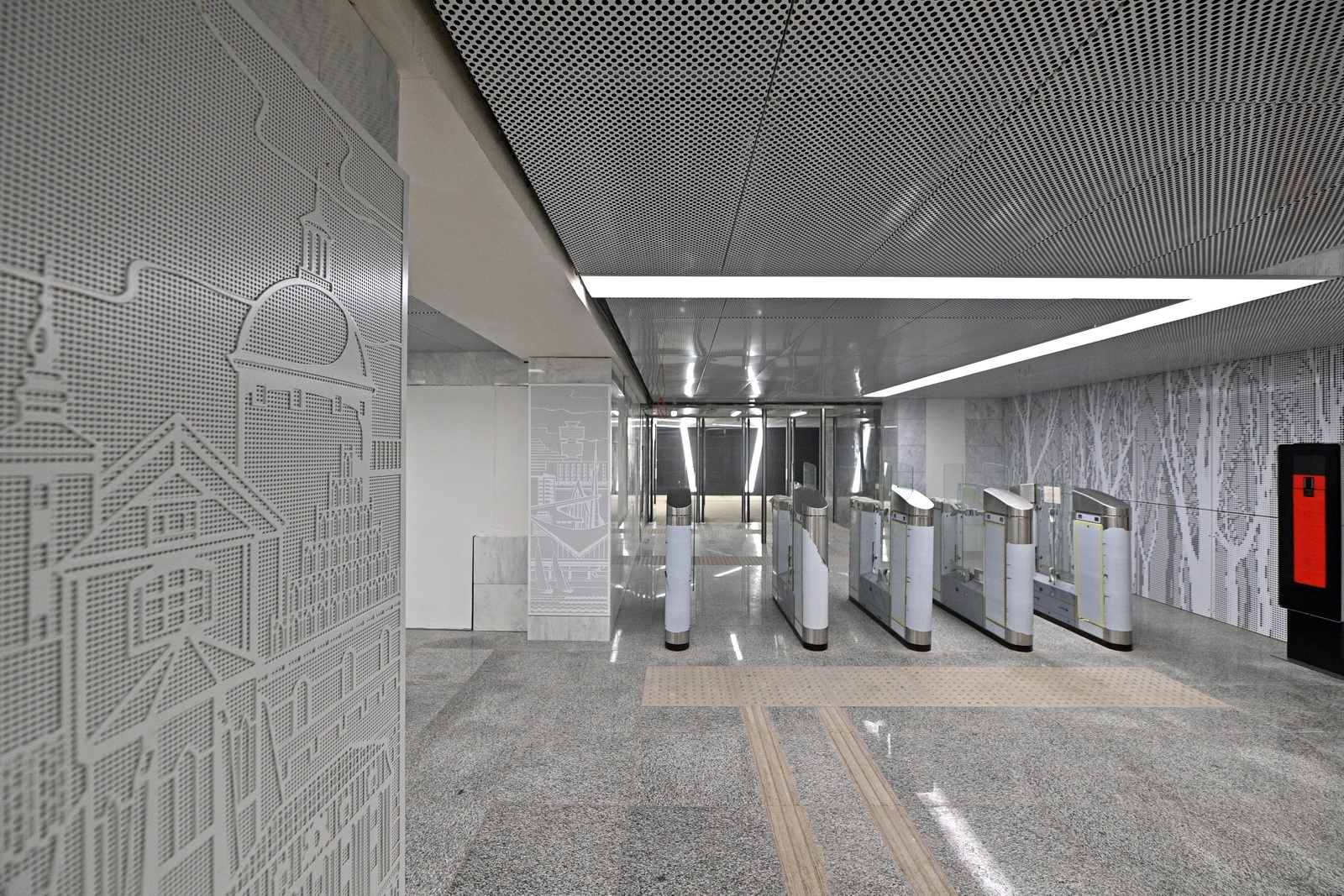 По словам генерального директора АО «Мосметрострой» Сергея Жукова, рисунок исторических панно повторили в отделке колонн вестибюлей – изображение нанесли на перфорированные стальные панели.