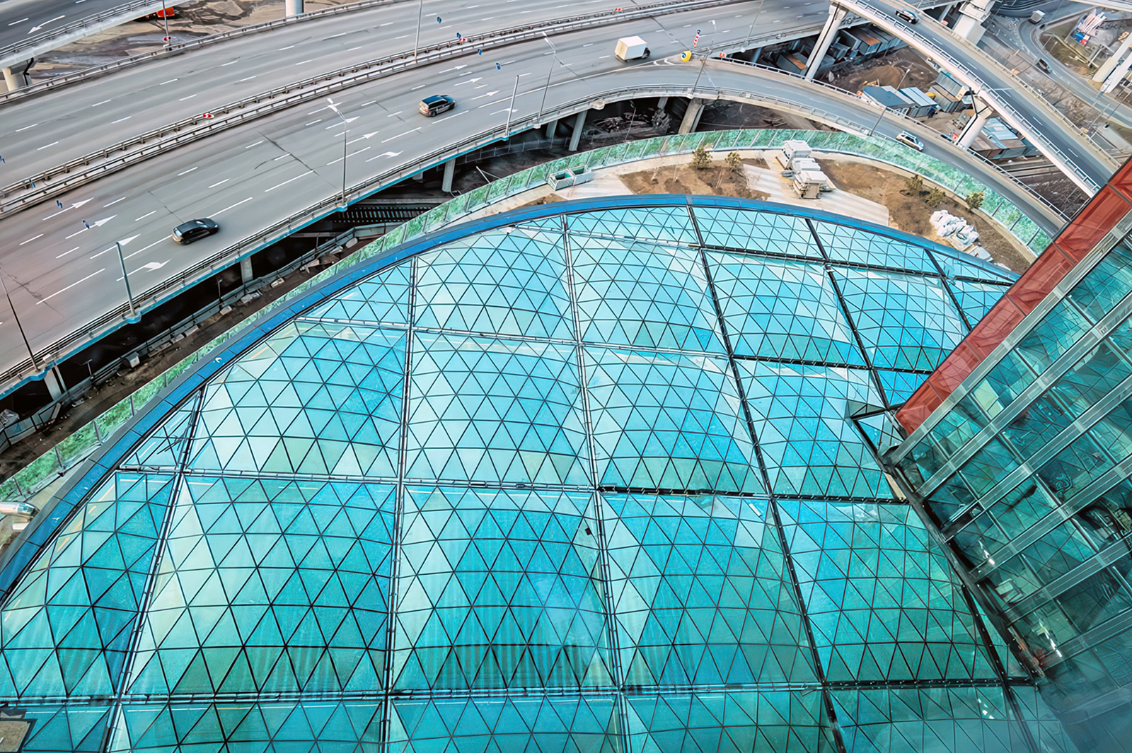 Завершено остекление купола атриума между башнями офисного комплекса в Пресненском районе