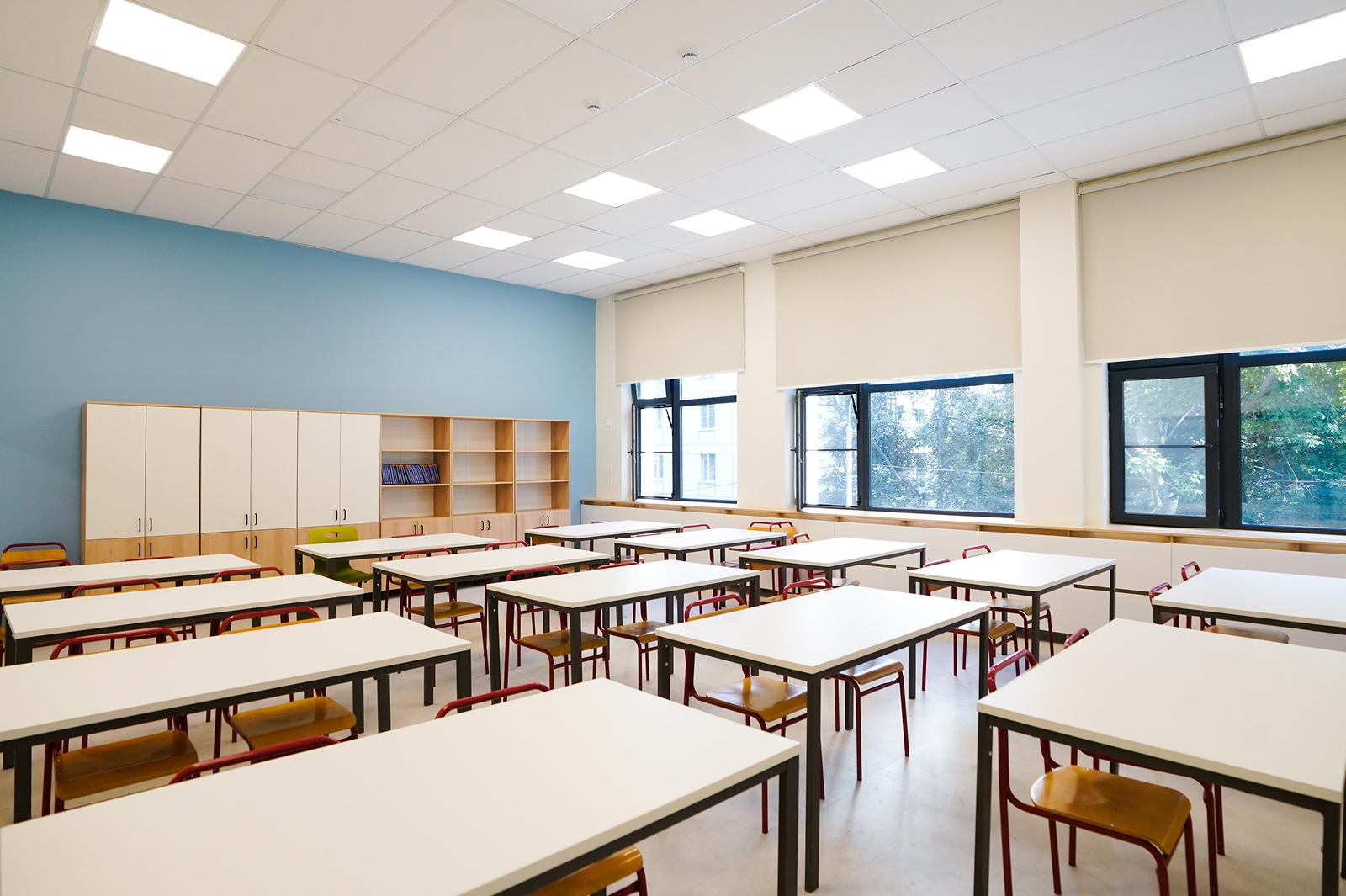 «При этом в него можно попасть и из основного здания школы. Высота потолков в зале достигает 6 м, а раздвижной занавес позволяет эффективно зонировать пространство», – добавил глава Департамента.