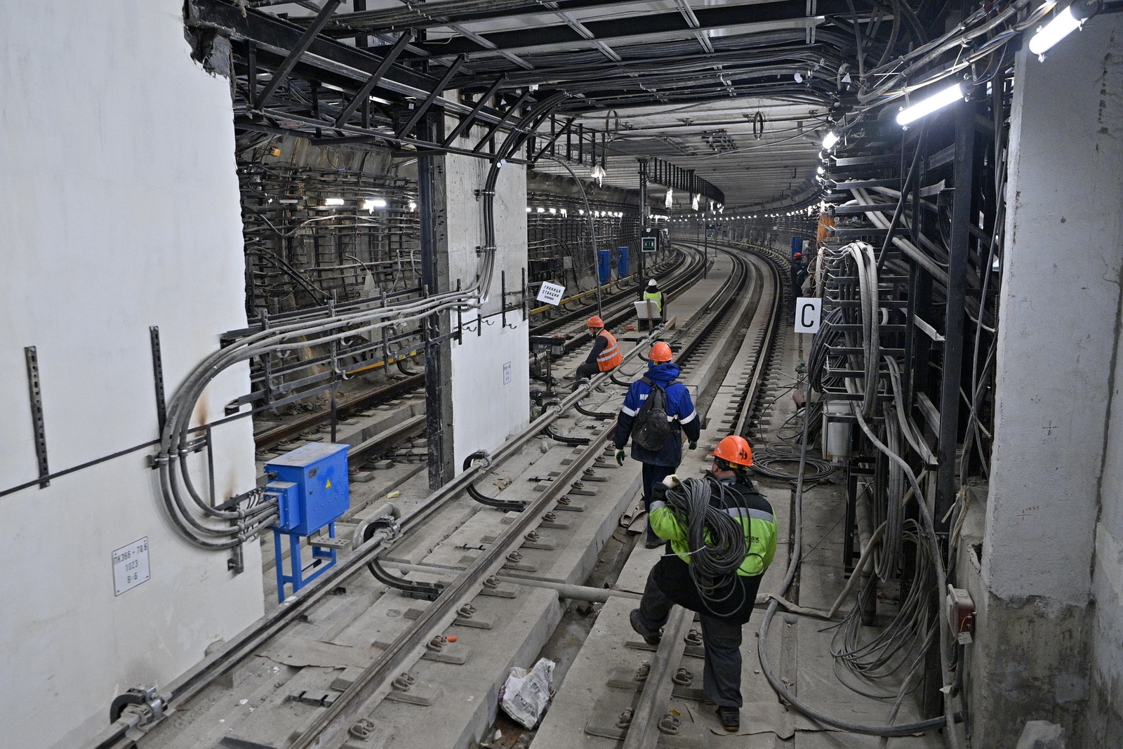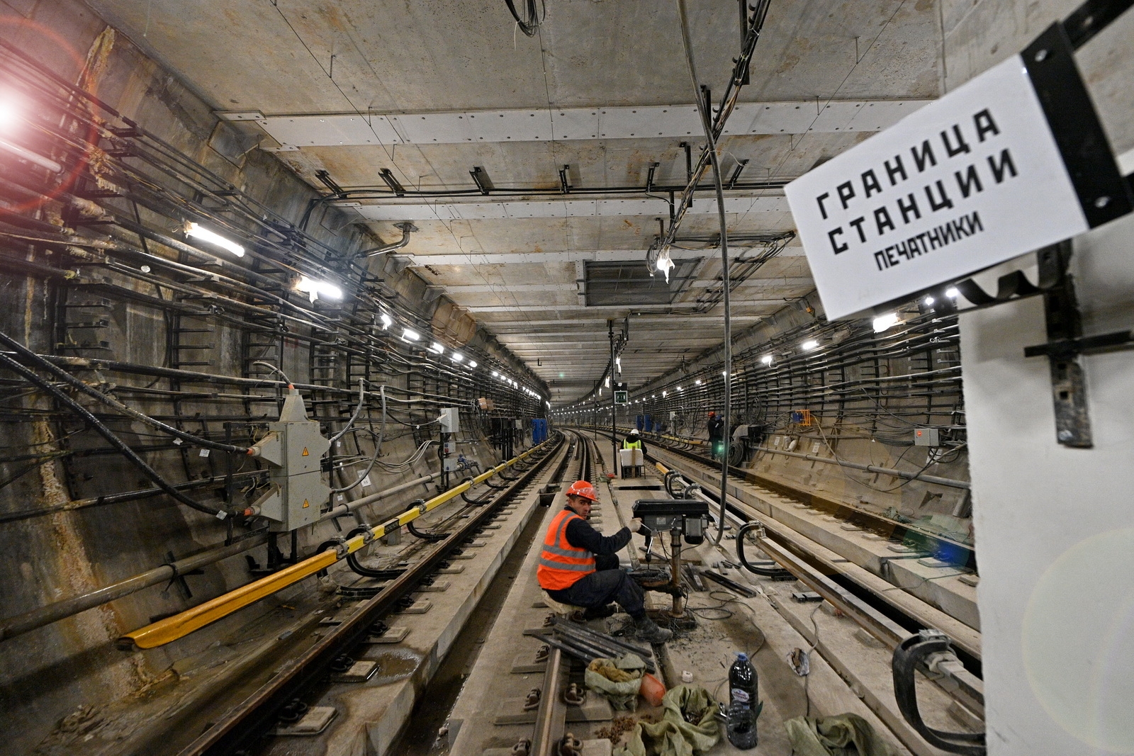 «Строители закончили устройство верхнего строения пути в перегонных тоннелях и на станции «Печатники» Большого кольца. Смонтировано порядка 3,7 тыс. метров рельсового полотна: полностью уложено подрельсовое основание, рельсы, скрепления. В ближайшее время специалисты приступят к навеске контактного рельса», – сказал Андрей Бочкарёв.