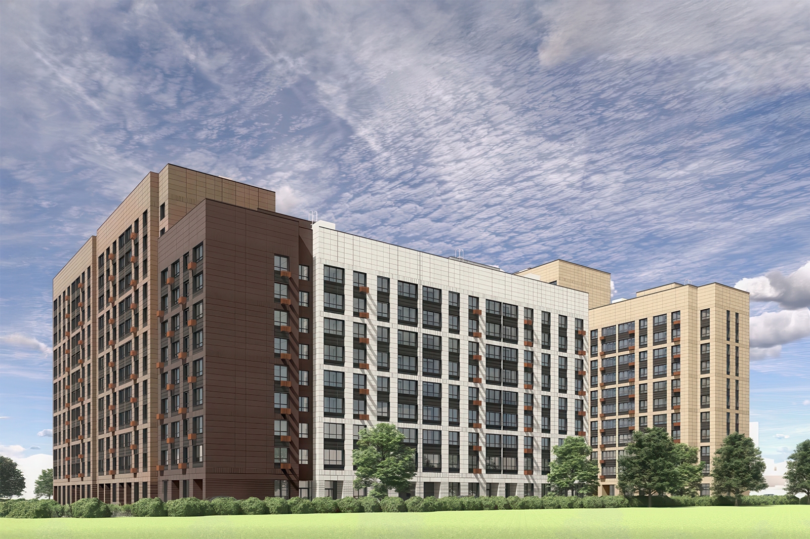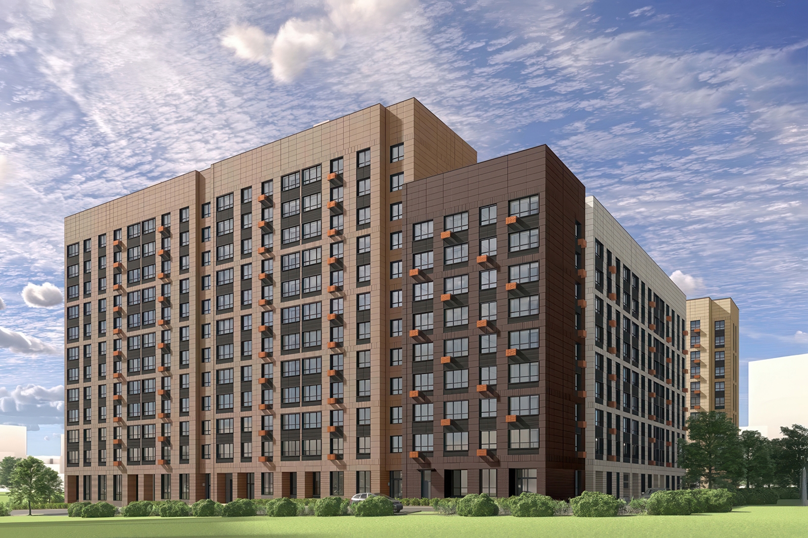 На фасадах корпусов установят интегрированные в общий дизайн корзины для кондиционеров.