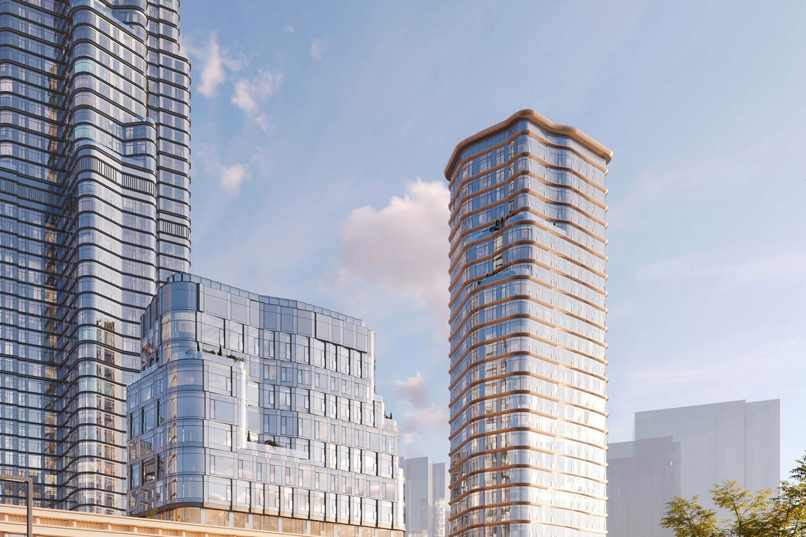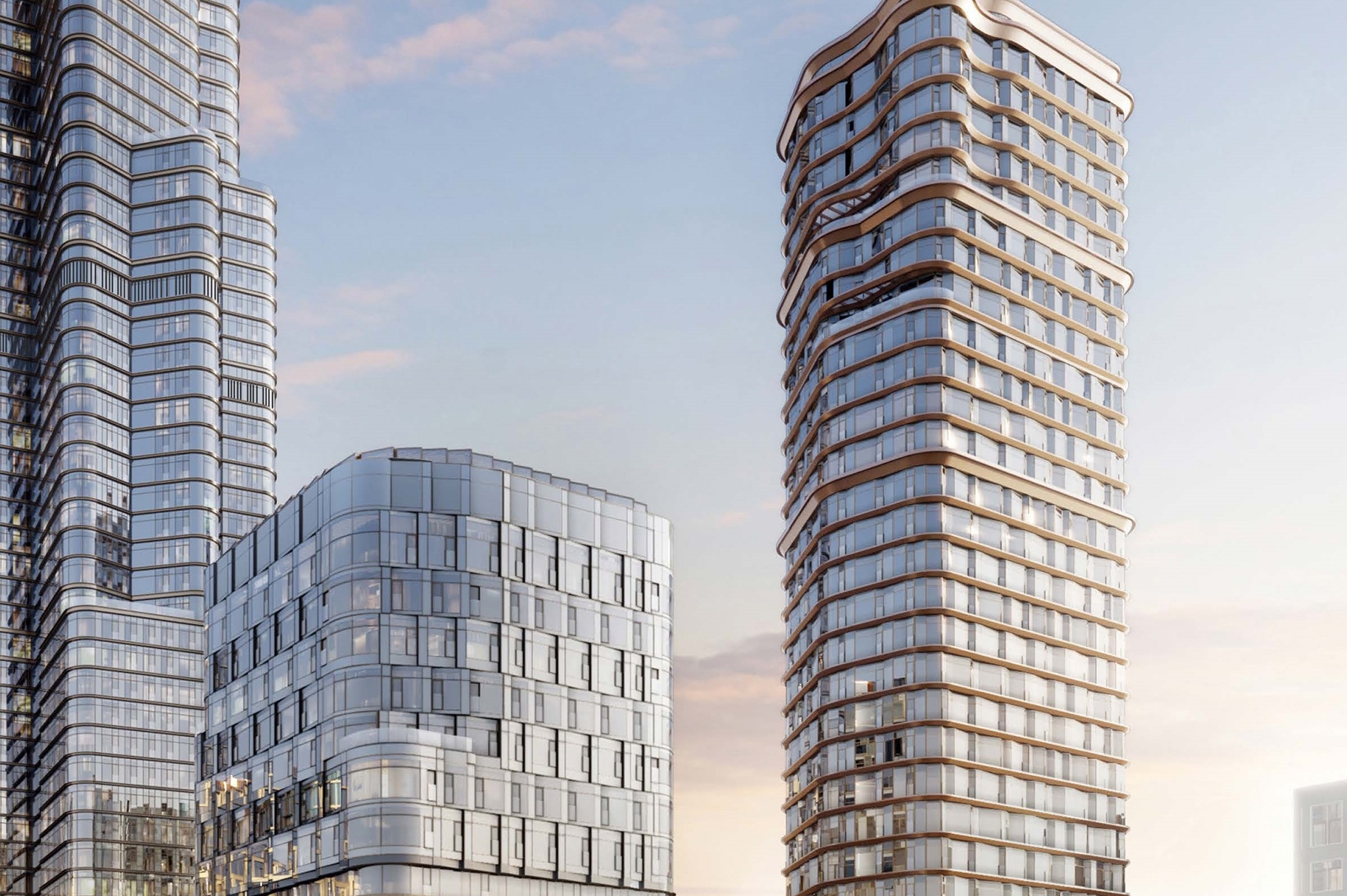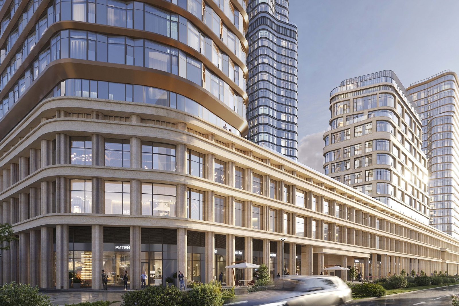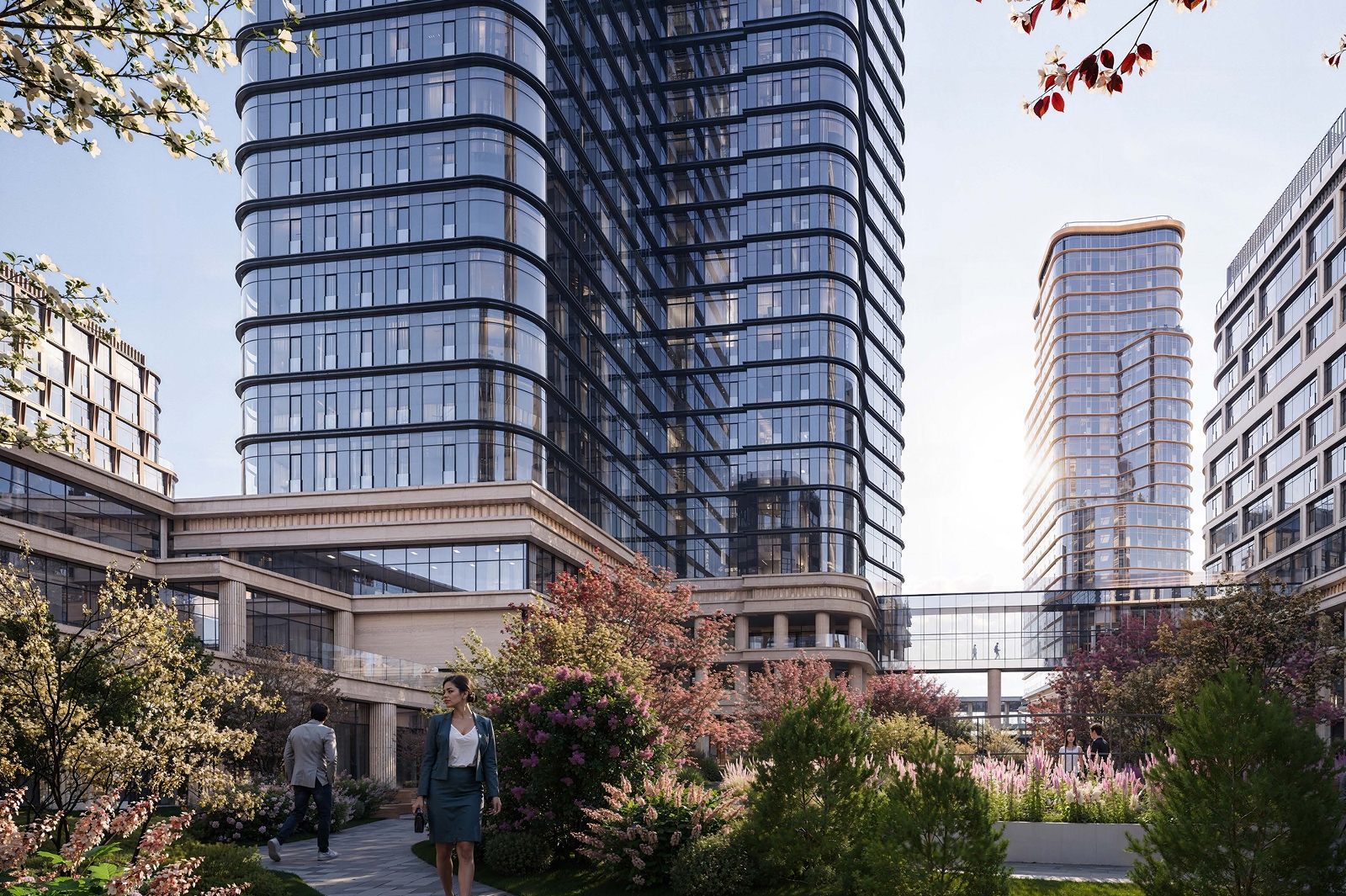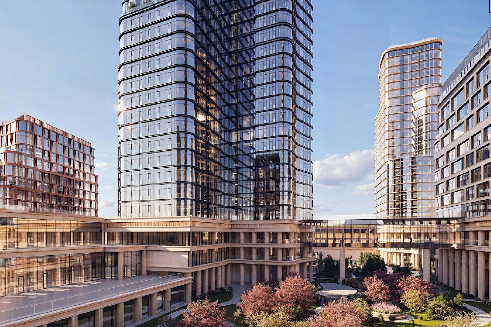 Корпуса обретут сложный силуэт за счет выступающих объемов, а закругленные формы витражных систем позволят создать плавные переходы между секциями, связав отдельно стоящие здания в единый ансамбль.