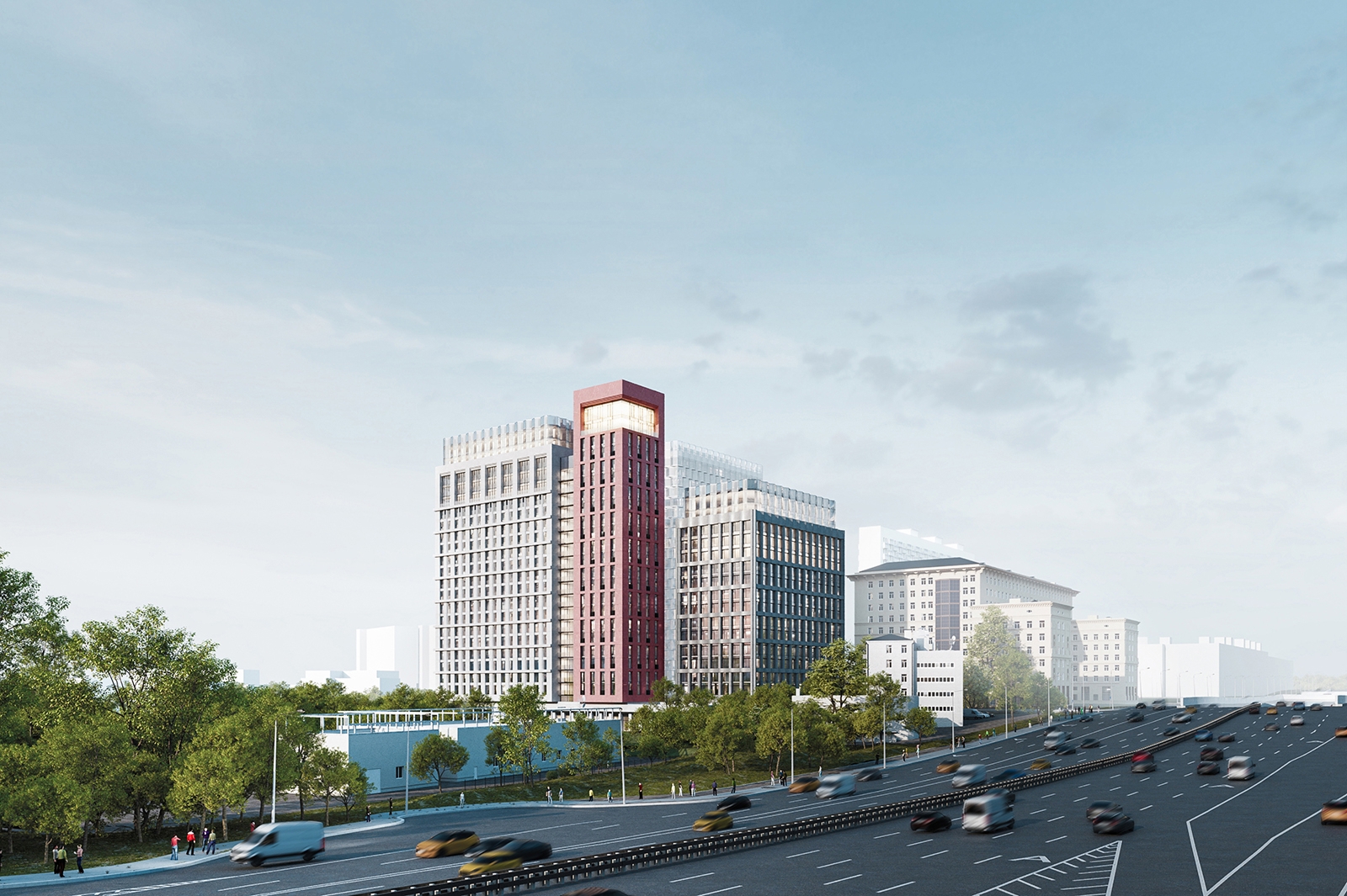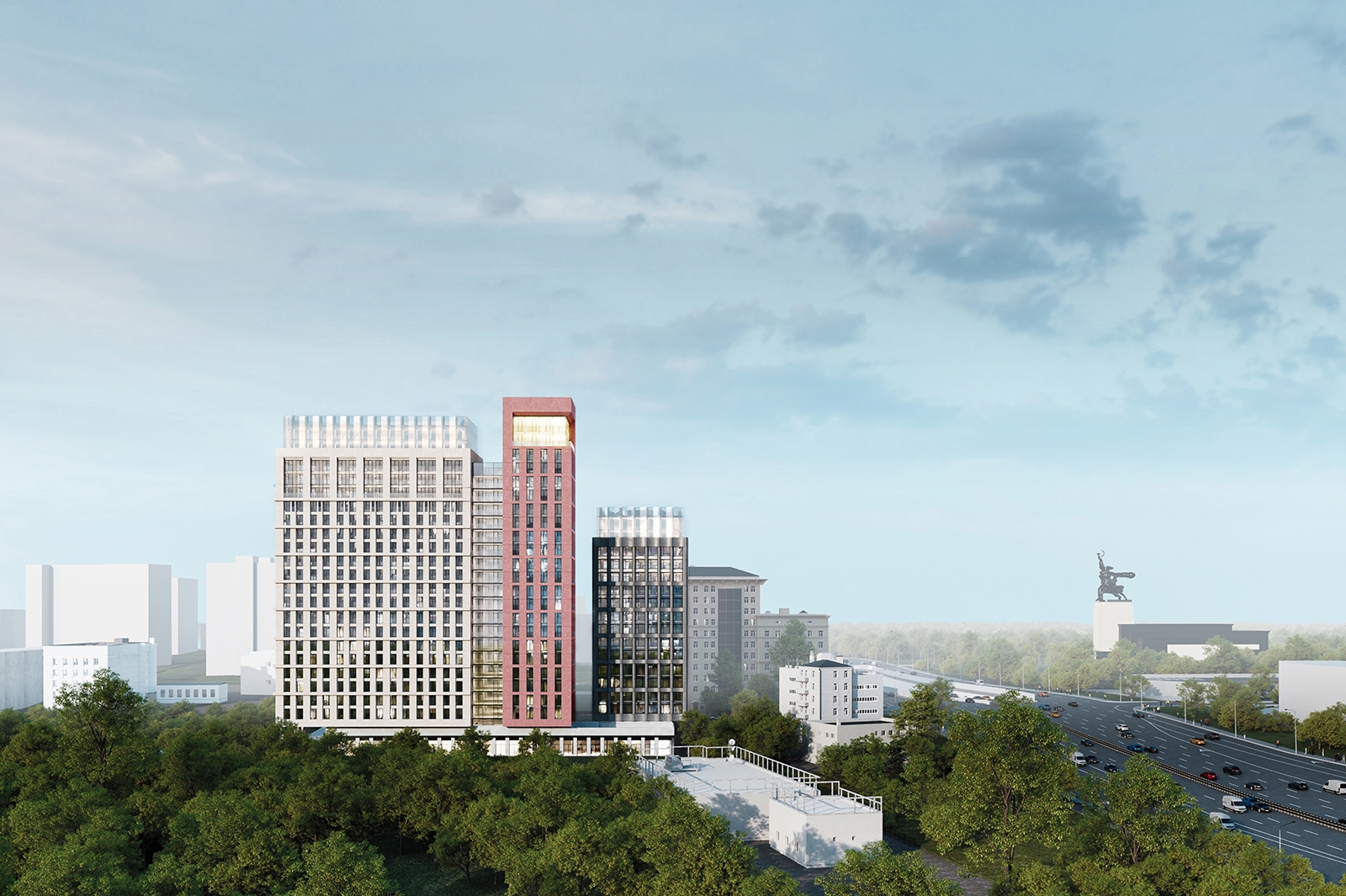 Башня-«маяк» будет соединяться с 23-этажным светло-серым корпусом, обращенным в сторону парка и набережной Яузы. Его нижнюю часть выполнят из гранита массой около 655 тонн.