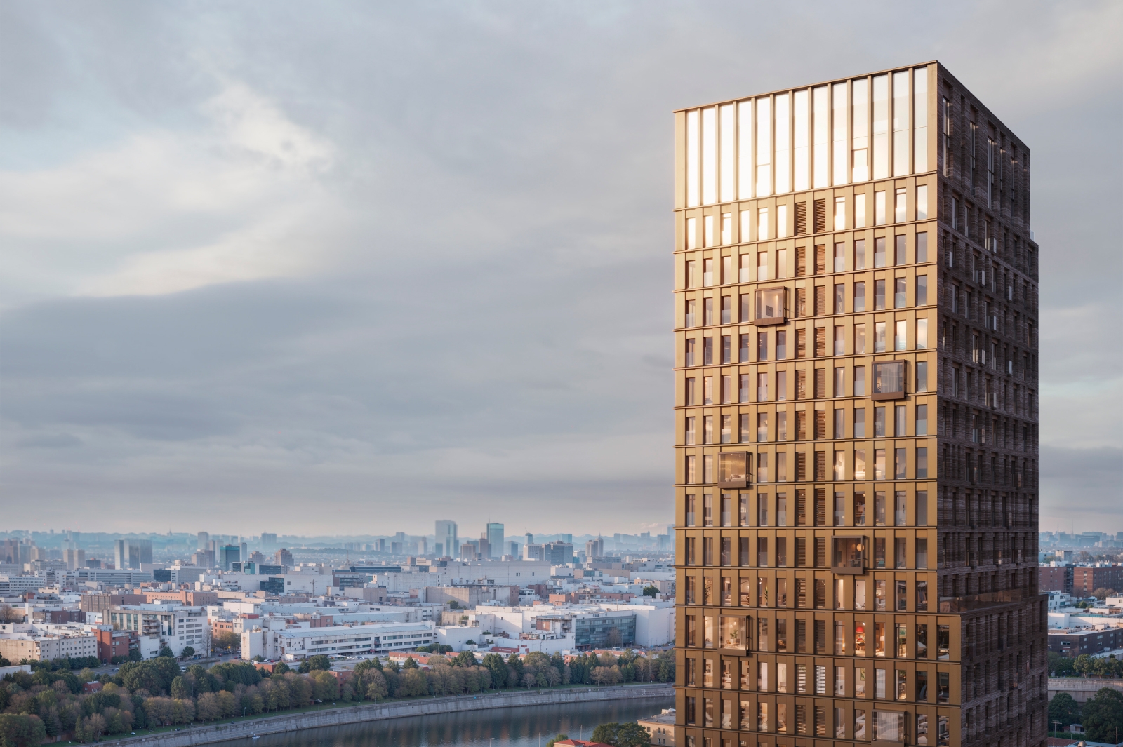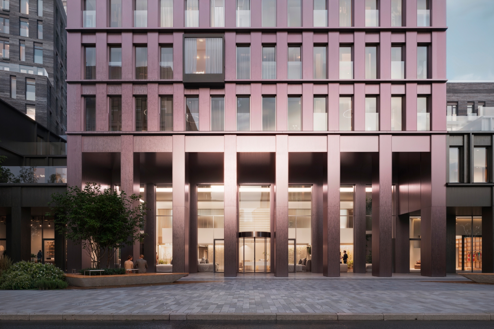 «В проекте сочетаются различные фактуры и цветовые решения, создается нарочитый контраст между «уличным» и «дворовым» контуром. Внешний фасад будет решен в строгой, ритмичной манере и облицован анодированным алюминием. В противовес ему внутренний фасад будет выполнен из ригельного кирпича, напоминающего горную породу», – пояснил Сергей Кузнецов.