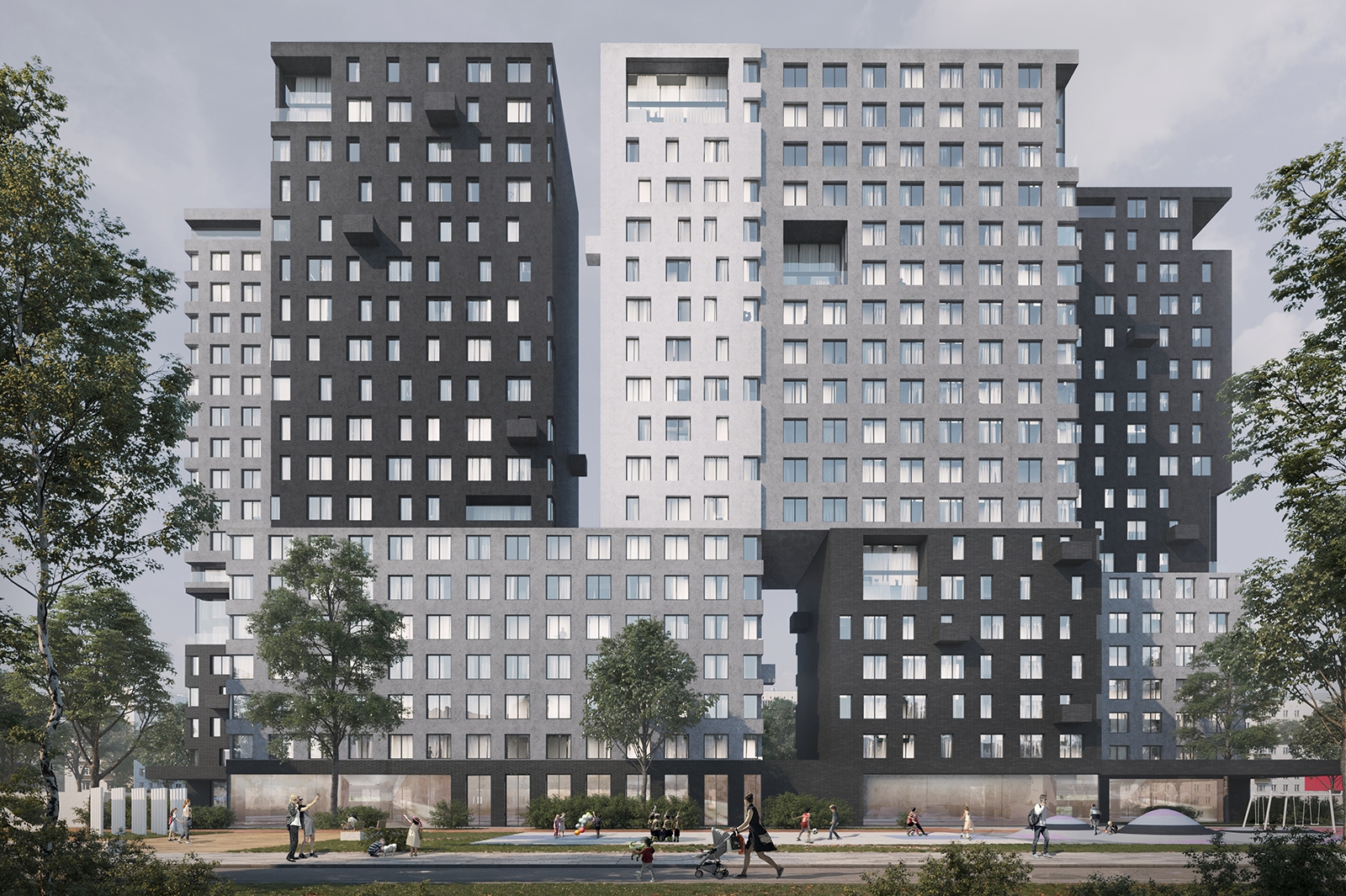 «Проект комплекса разработало архитектурное бюро WALL. Планировочные решения базируются на сочетании сложных кубических объемов. В качестве основных материалов для облицовки фасадов решено использовать штукатурку и клинкерный кирпич. Основные цвета – черный и светло-серый, а один из блоков будет белого цвета», – рассказал Сергей Кузнецов.