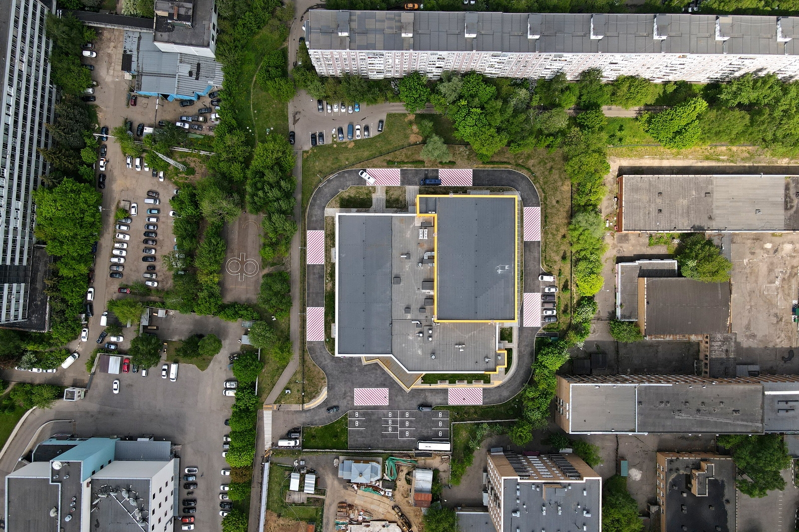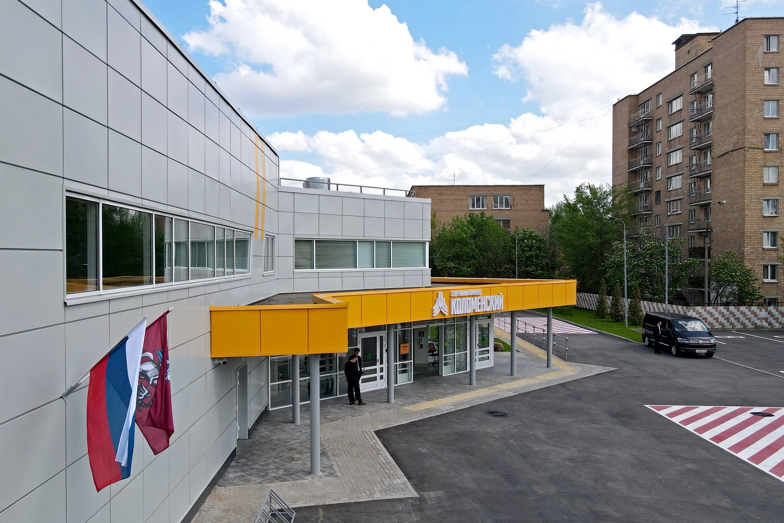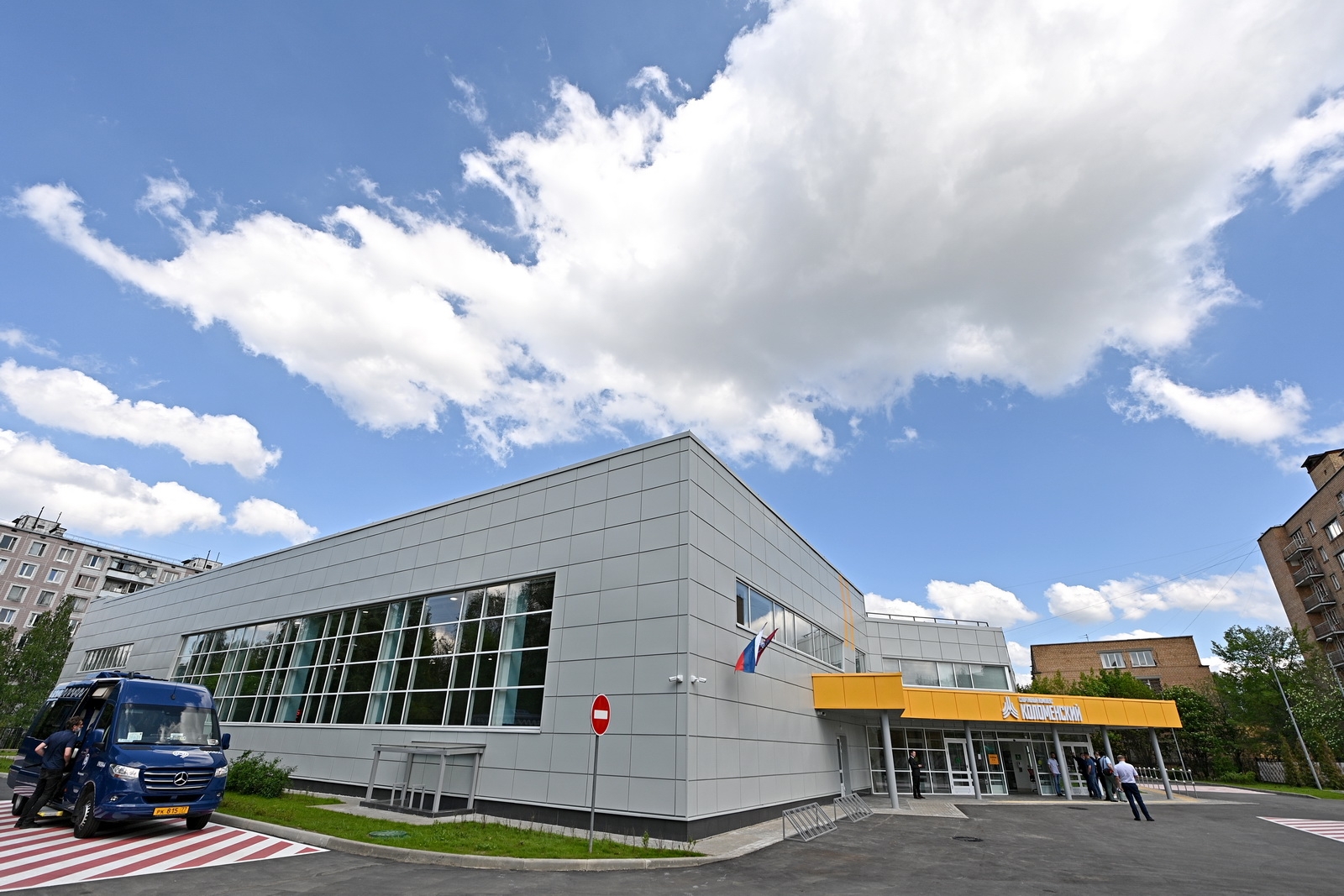 Прилегающая к комплексу территория благоустроена: здесь высажено свыше 300 деревьев и установлены малые архитектурные формы. Кроме того, рядом оборудованы автомобильные и велосипедные парковки.