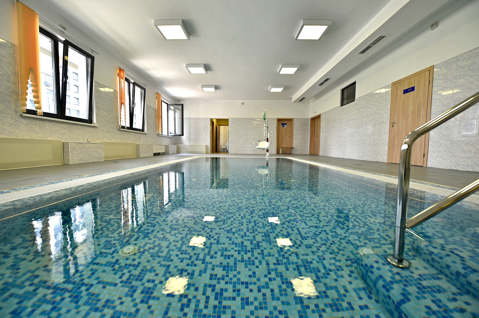 В детском саду есть собственный бассейн 3 на 7 м с отдельными раздевалками для мальчиков и девочек, душевыми и санузлами, тренерской комнатой, кабинетом медсестры и анализа воды.