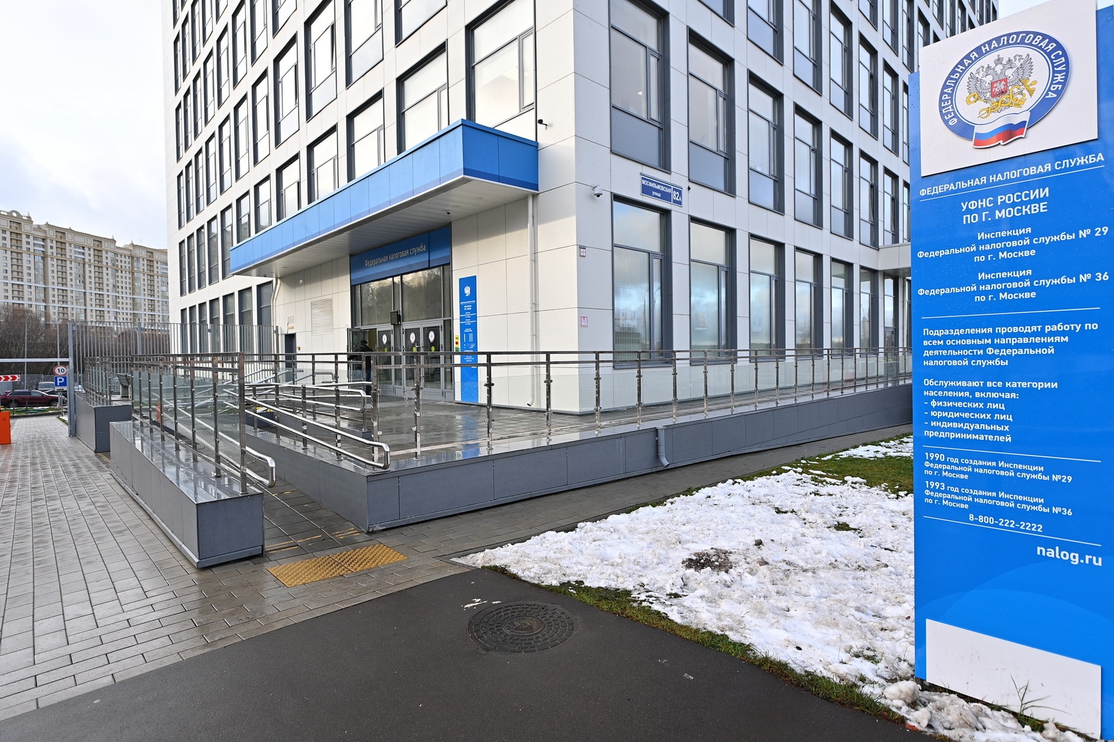 Здание для Федеральной налоговой службы (ФНС) построили в районе Раменки на западе столицы. В новостройку переехали 669 сотрудников налоговых инспекций № 29 и № 36, которые ранее размещались в тесных и плохо приспособленных для современной работы помещениях, разбросанных по шести адресам.