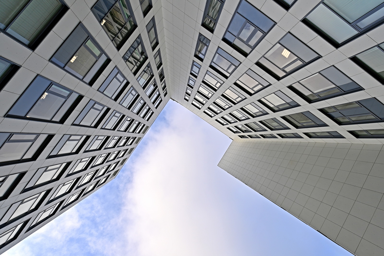 Просторные зоны обслуживания посетителей расположены на первом этаже. Здесь же работает столовая для сотрудников и находится конференц-зал на 75 мест. Кабинеты занимают этажи со второго по седьмой. Серверные расположены на цокольном этаже, инженерные службы – на восьмом.