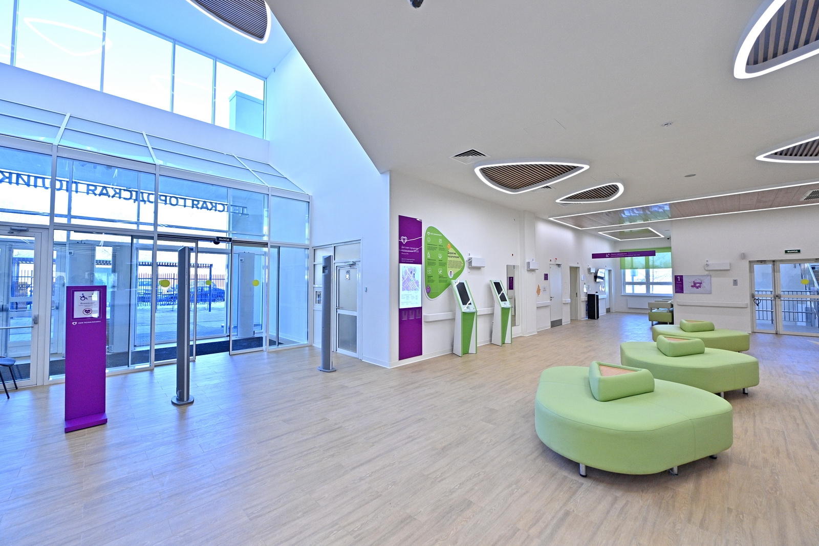 Комфорт маломобильных пациентов обеспечит безбарьерная среда. В здании предусмотрена специальная навигация для слабовидящих посетителей, а также парковочные места для людей с ограниченными физическими возможностями.