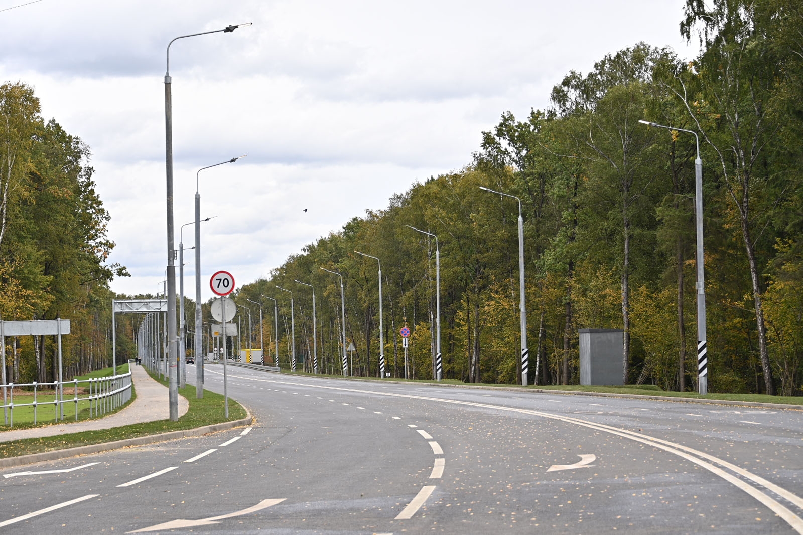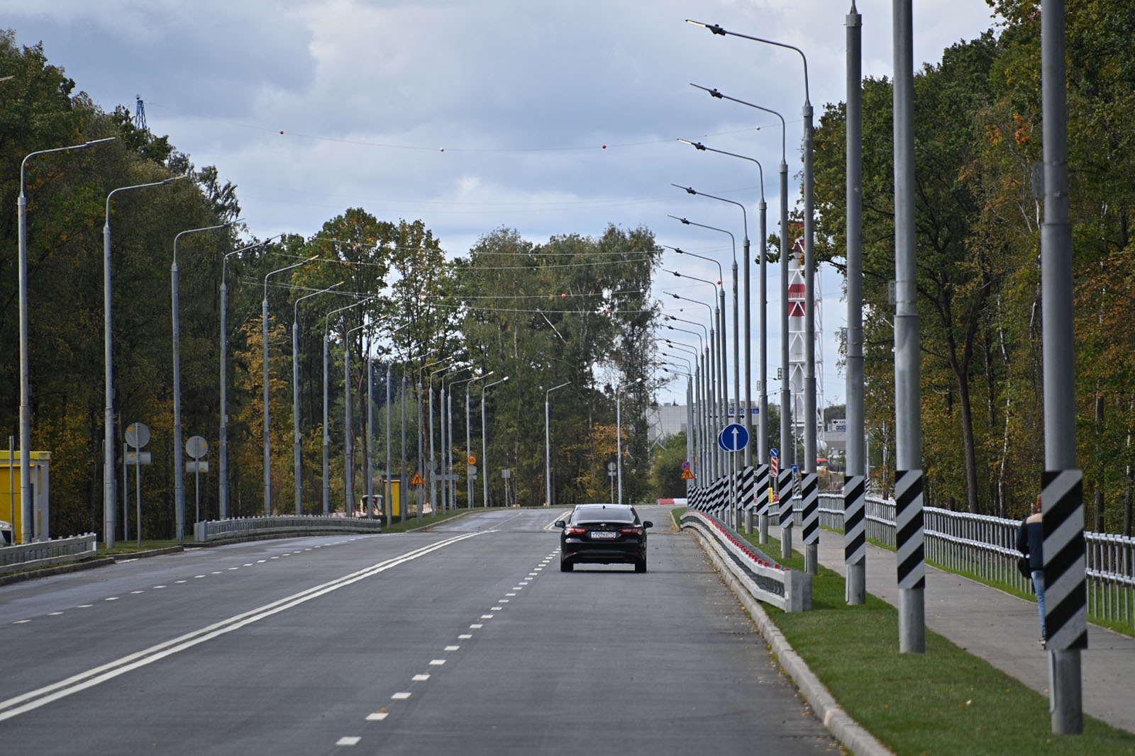 Вдоль магистрали установили освещение, три светофора и две остановки общественного транспорта.