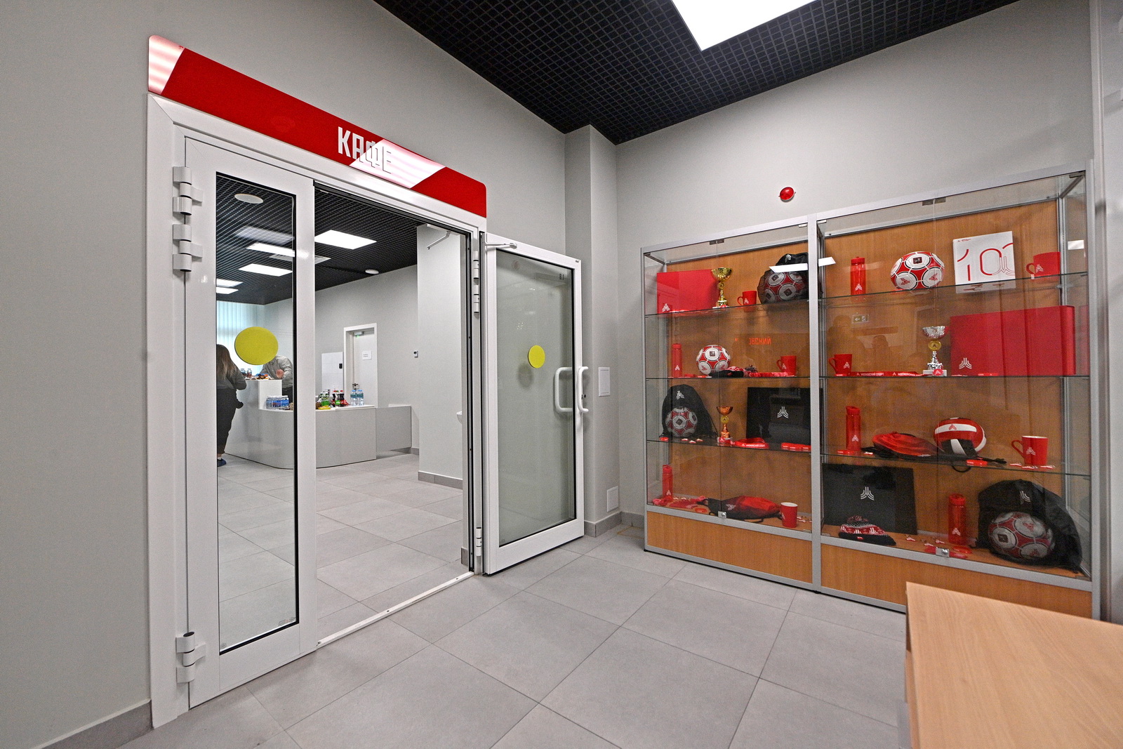Для спортсменов обустроены раздевалки с душевыми и санузлами. Оборудованы тренерские комнаты, медицинский блок с кабинетом дежурного врача, процедурной и зоной ожидания, технические и административные помещения, гардероб и буфет.