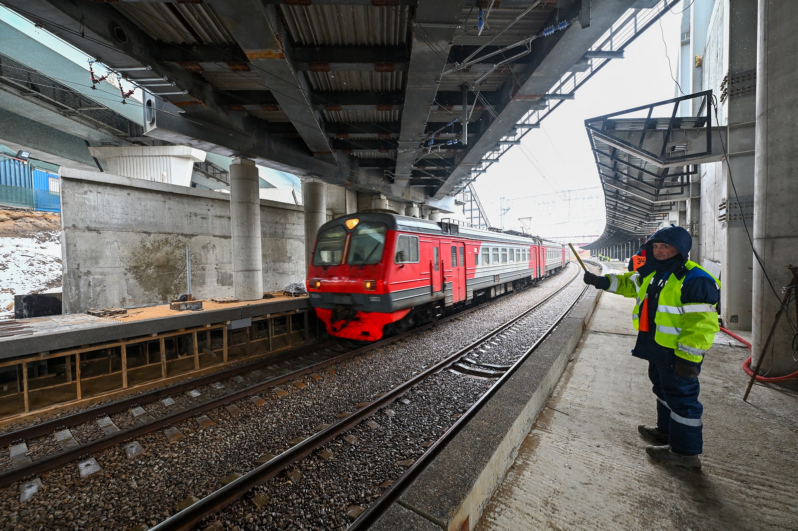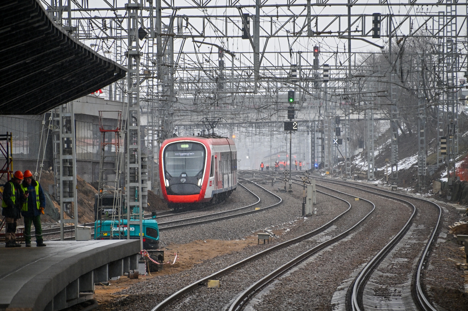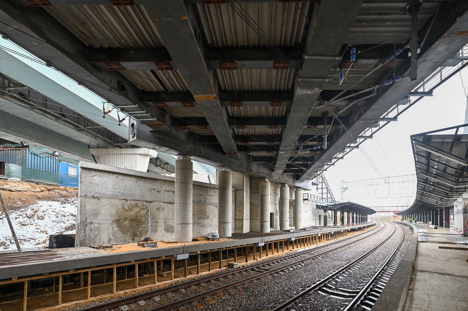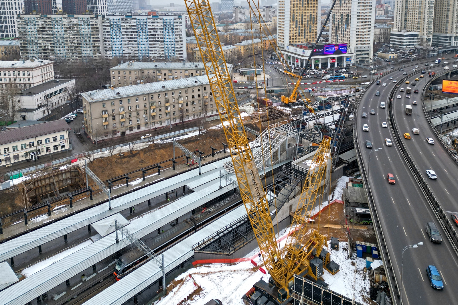 Работы ведутся в условиях плотной городской застройки и интенсивного автомобильного трафика, при этом движение поездов не прекращается. Для пассажиров возвели временные объекты – платформу и пешеходный мост через пути МЦД-1 и МЦД-4.