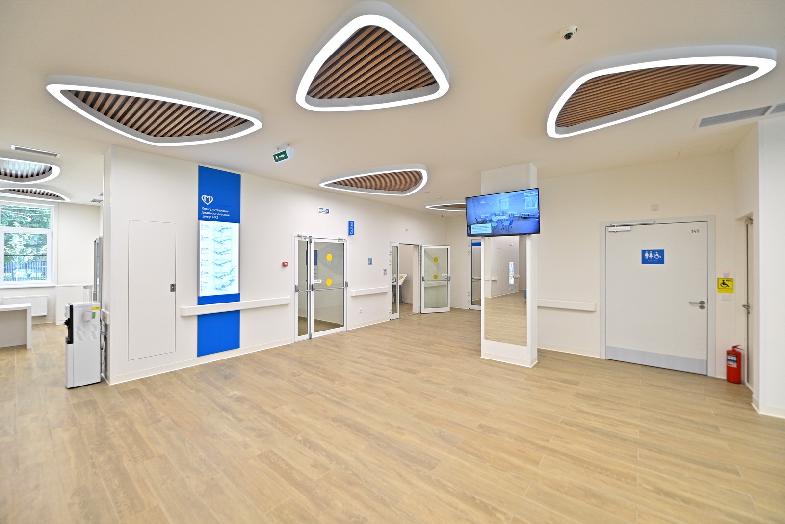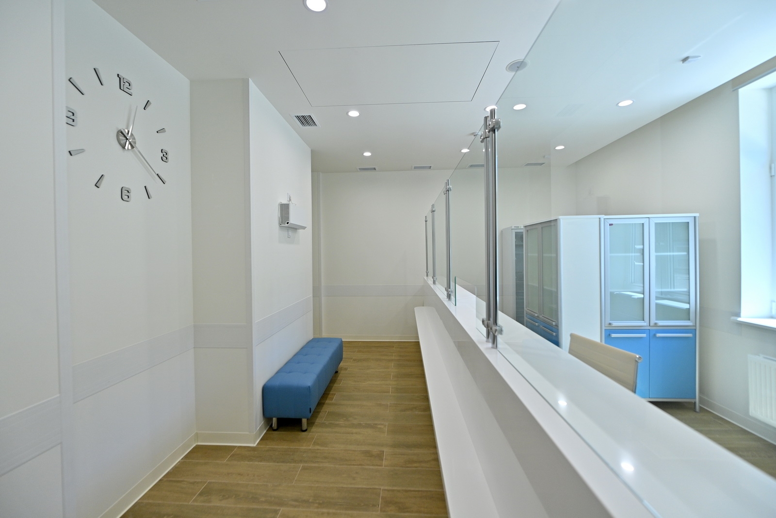 Для пациентов организуют комфортные зоны ожидания с кондиционерами, кулерами, телевизорами, мягкими диванами. Интуитивно понятная навигация позволит без труда найти нужный кабинет.