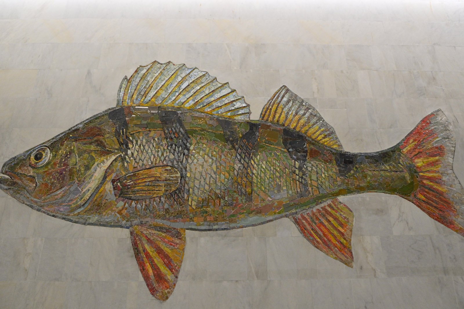 «Нагатинский Затон» практически станет музеем, посвященным обитателям рек столичного региона и, в частности, Нагатинского затона. Здесь пассажиры смогут полюбоваться крупными, а главное, реалистичными изображениями рыб, выполненными из натурального камня в технике мозаичного панно. Именно они и формируют запоминающийся образ станции.