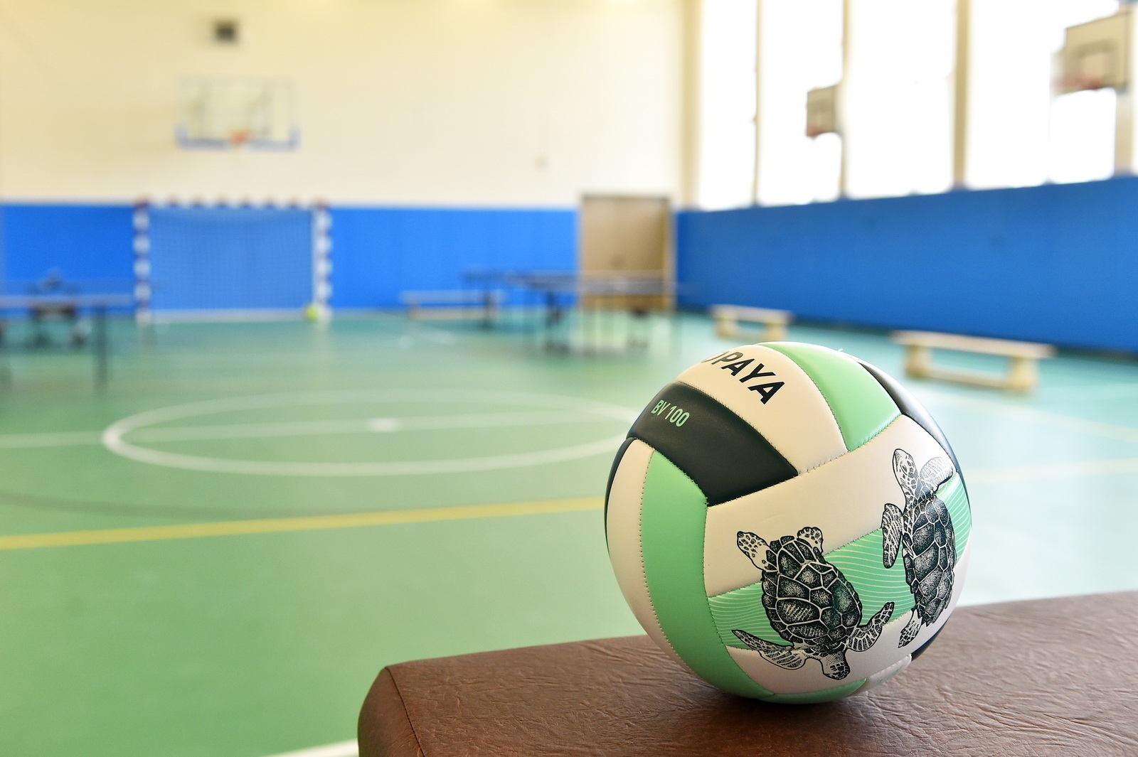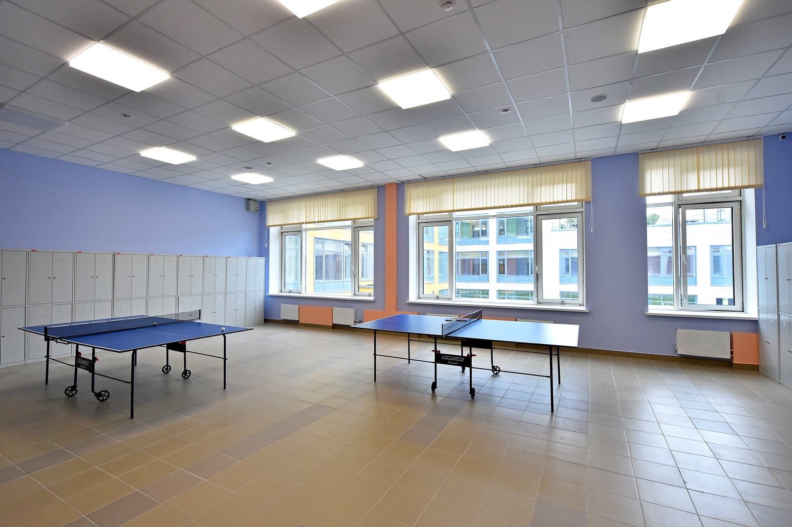 В школе два спортивных зала с раздевалками, душевыми, туалетами и комнатами для хранения инвентаря. С помощью сетки большой зал можно разделить на две зоны – для проведения параллельных занятий разных классов. В спортивном блоке есть студия хореографии и тренажерный зал.