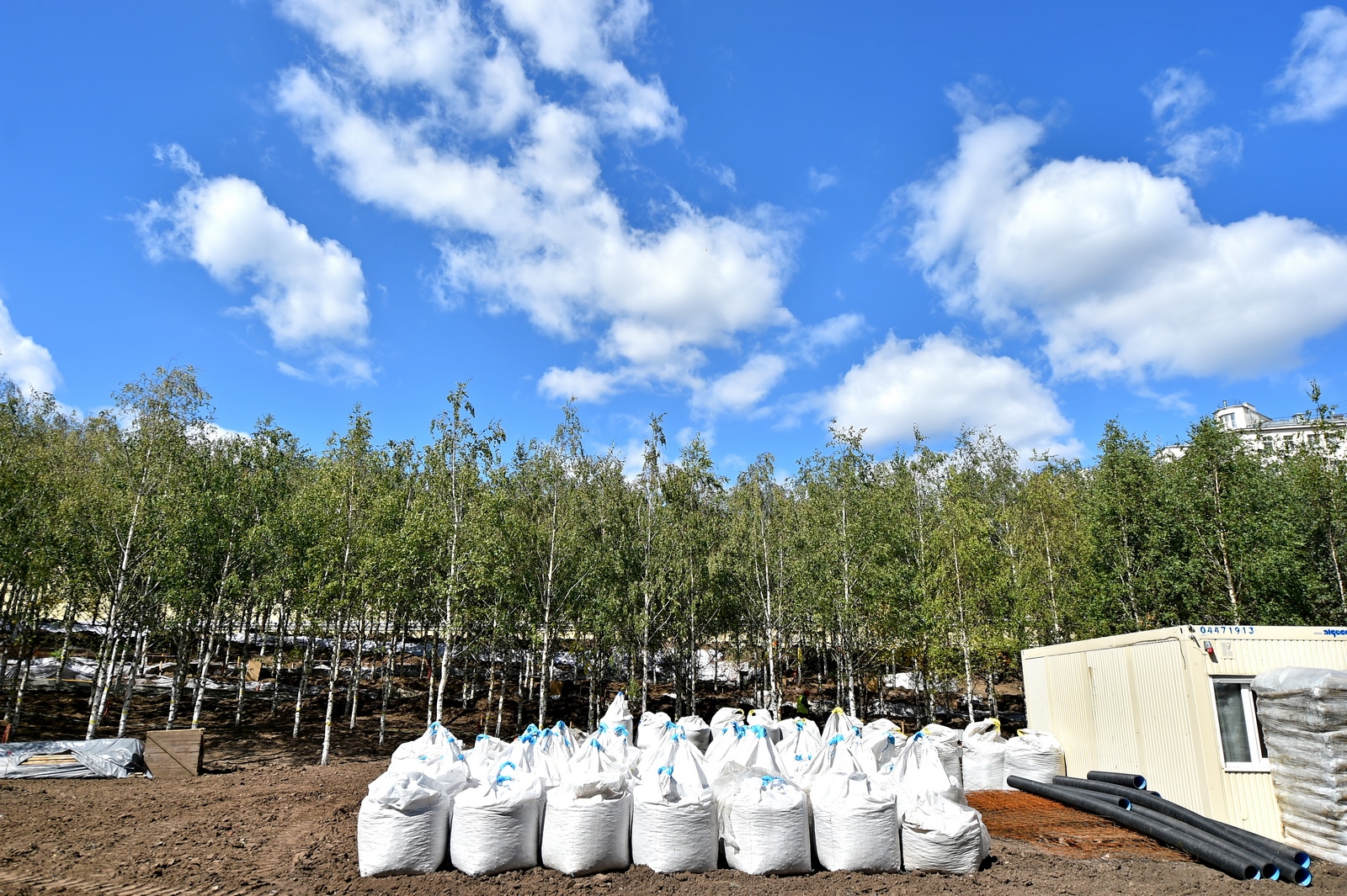 Также здесь сооружают подземный паркинг с эксплуатируемой кровлей. На ней высадили берёзовую рощу.