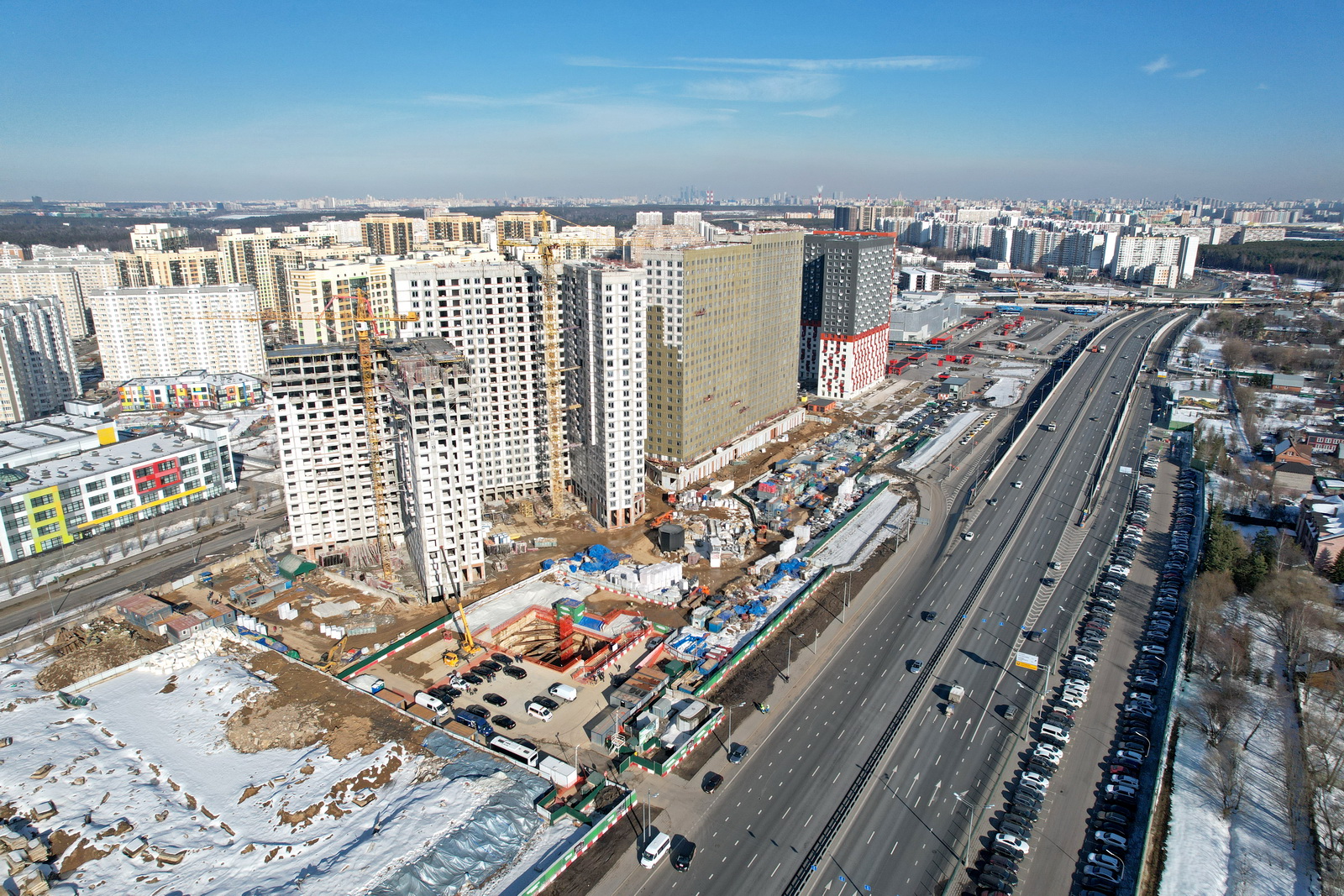 Обе станции нового участка желтой ветки – «Пыхтино» и «Внуково» – активно строятся. «Пыхтино» готова уже на треть, здесь почти завершены земляные работы и на две трети выполнен монолит.