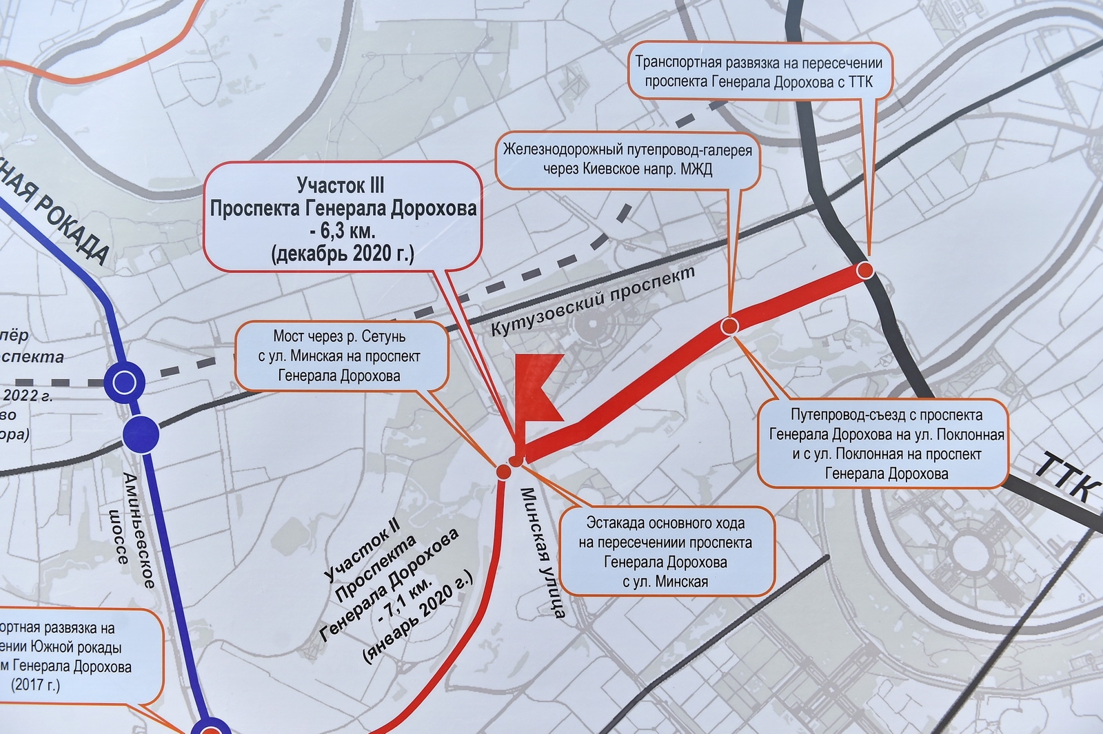 «На проспекте Генерала Дорохова осталось построить небольшой участок длиной около шести километров, но сложный, с большим выносом коммуникаций и инженерных сетей. Планируем построить его на год раньше срока – до конца 2020 года», –