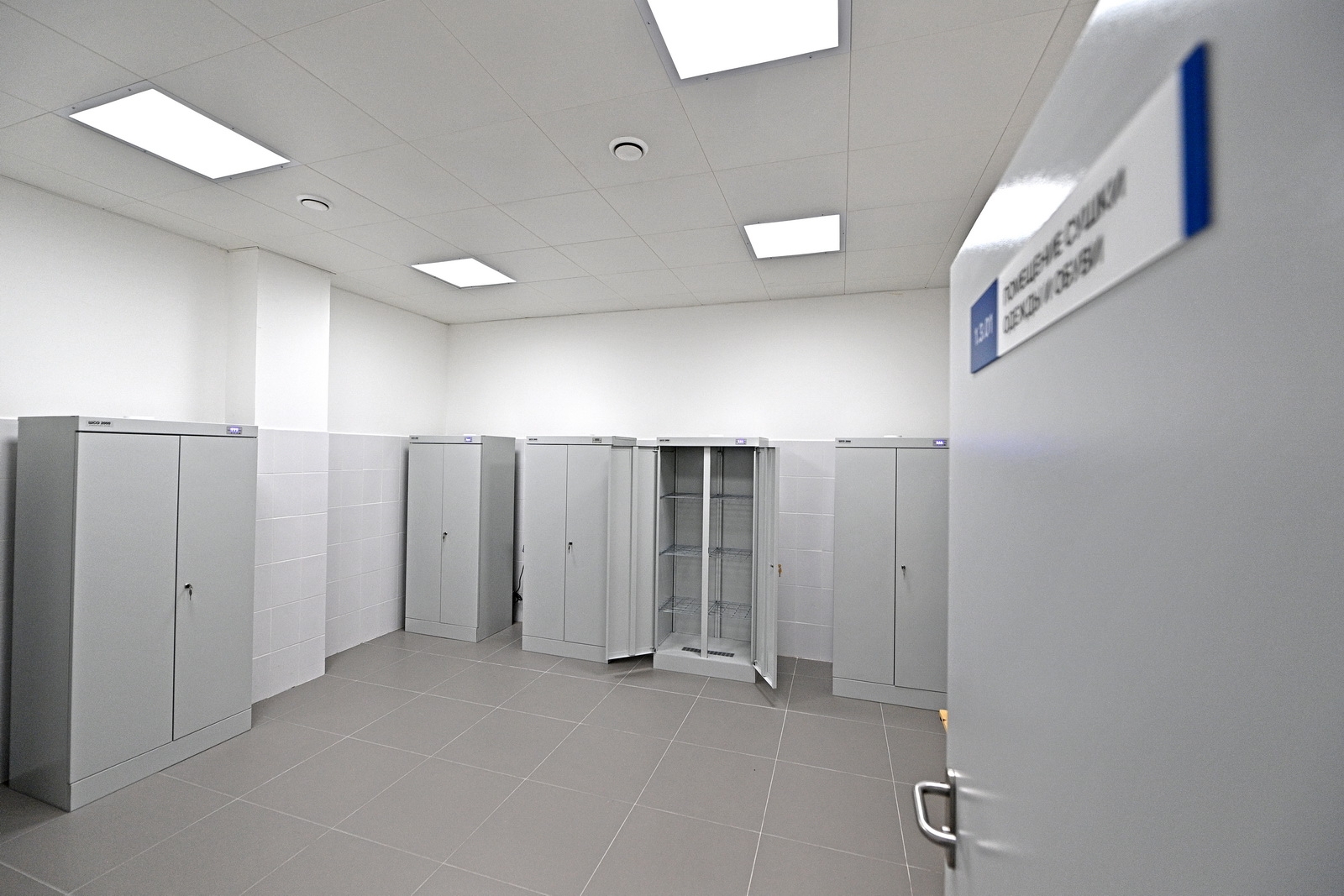 На втором этаже находятся гардероб медиков и водителей, уборные и душевые, комната психологической разгрузки, служебные кабинеты, комнаты отдыха, конференц-зал и др. В здании установлено новейшее оборудование.