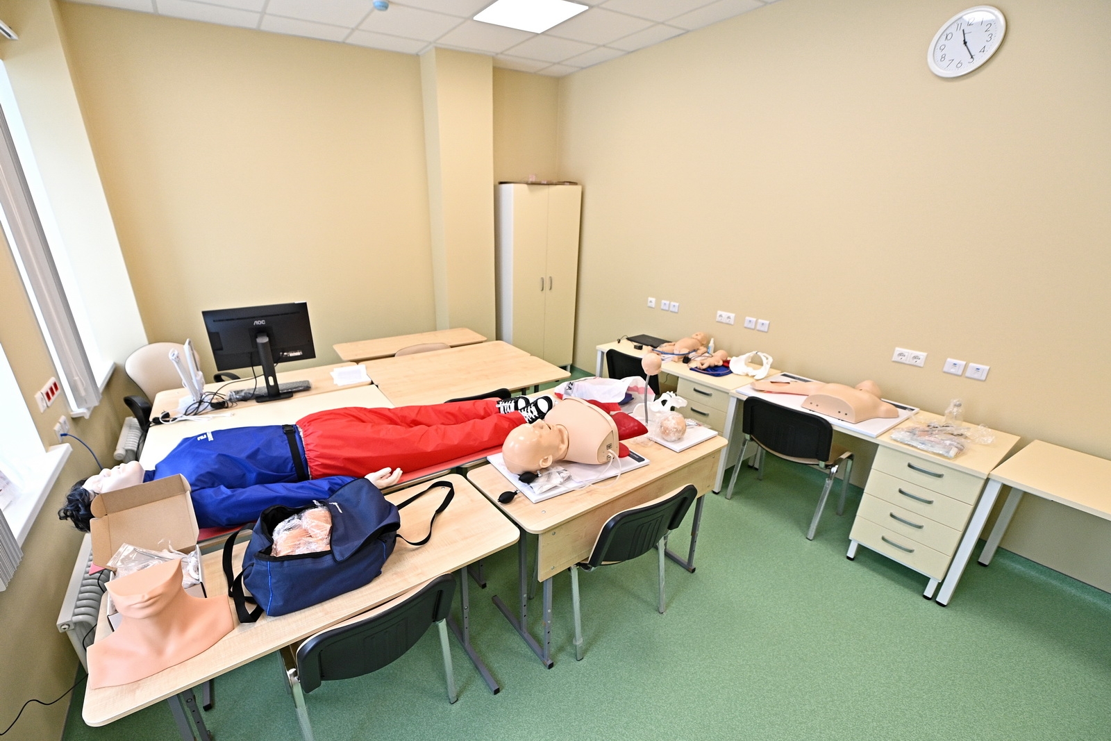 В учебно-методическом классе врачи смогут не только посещать теоретические занятия, но и отрабатывать необходимые практические навыки на специальных манекенах – например, проведение сердечно-легочной реанимации, интубацию трахеи, катетеризацию периферических и центральных вен.