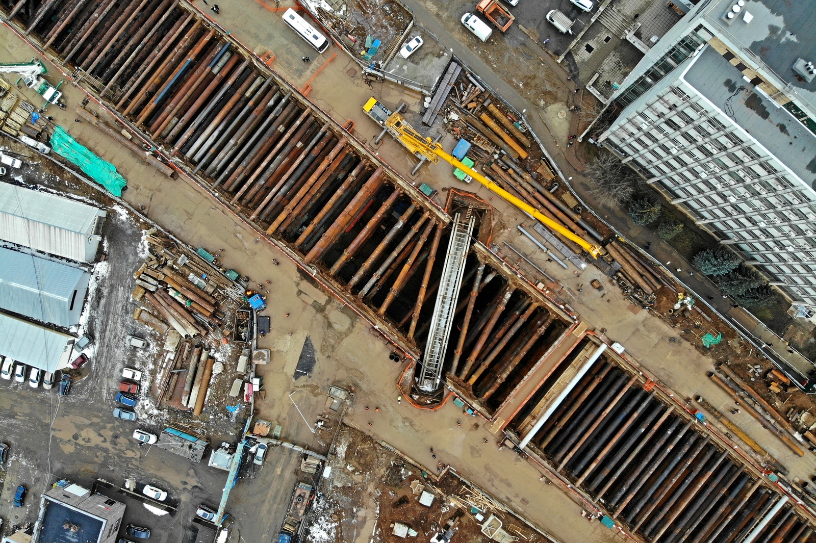 При строительстве станции «Нижегородская» применили технология top-down, когда подземная часть возводится «сверху-вниз» от уровня земной поверхности. Сначала бетонируют перекрытия и сваи-колонны, а потом работы идут вглубь с возможностью параллельного строительства сооружений на поверхности. Это позволяет работать в условиях плотной застройки и экономит время.