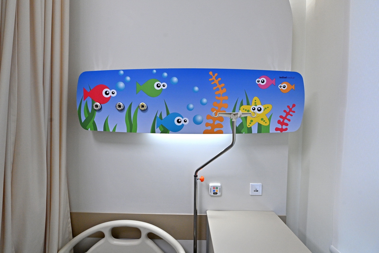 Кроватки с мишками, рисунки на стенах, яркие картины с изображениями животных, уютные уголки для рисования и учебы – все это создаст у юных пациентов позитивный настрой на скорейшее выздоровление.
