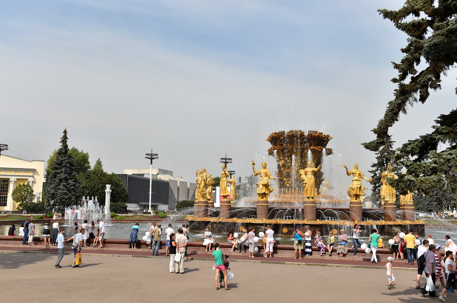 Это один из самых сложных фонтанов ВДНХ. В нем 784 струи, высота которых достигает 20 метров. Площадь бассейна составляет 3,8 тыс. кв. метров. Золотые фигуры 16 девушек, расположенные по кругу, символизируют республики бывшего СССР.