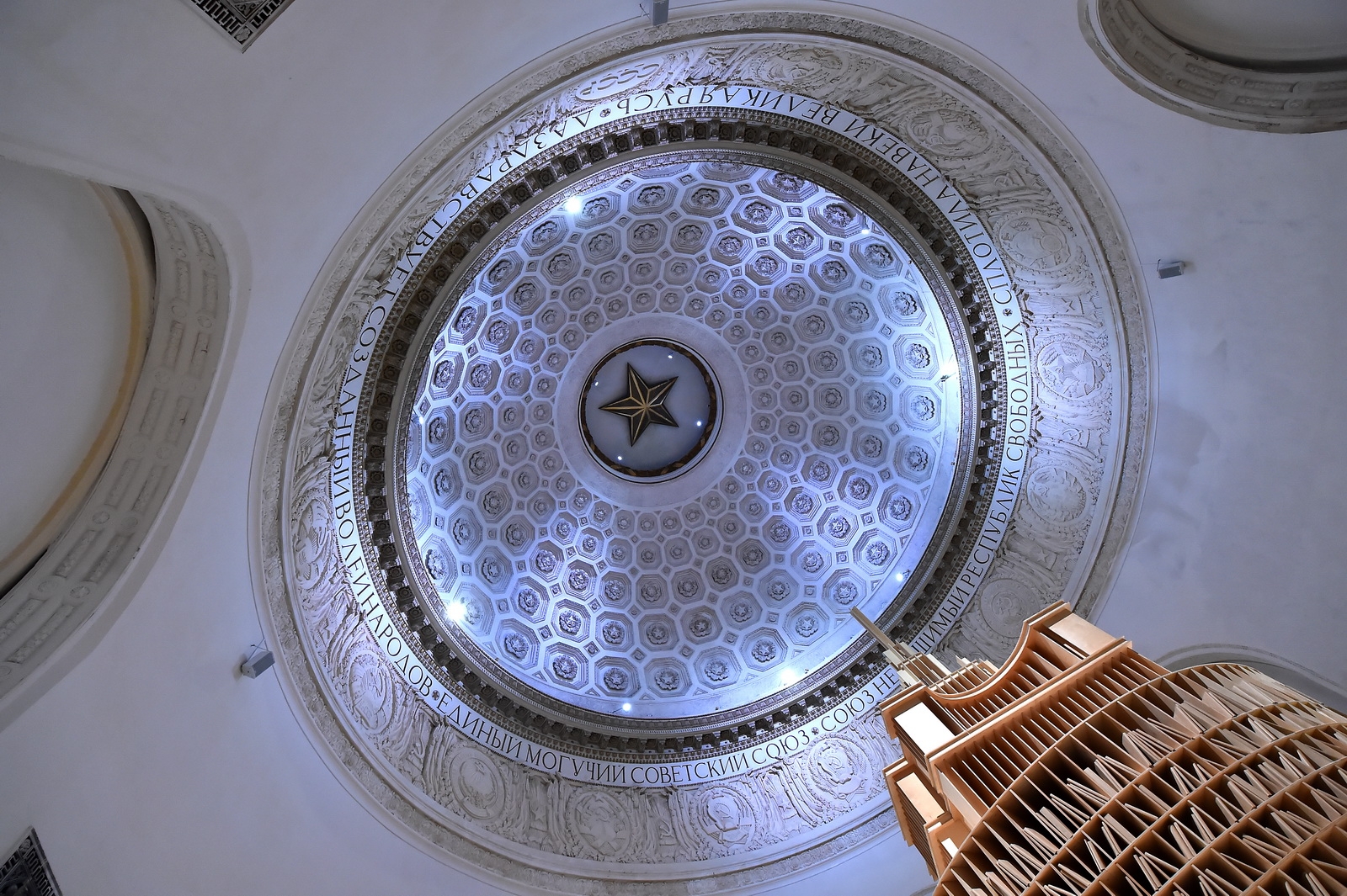 Отреставрирована ротонда павильона со скульптурой «Пшеничный сноп». Для нее воссоздано более 300 гипсовых элементов решеток и витражей.