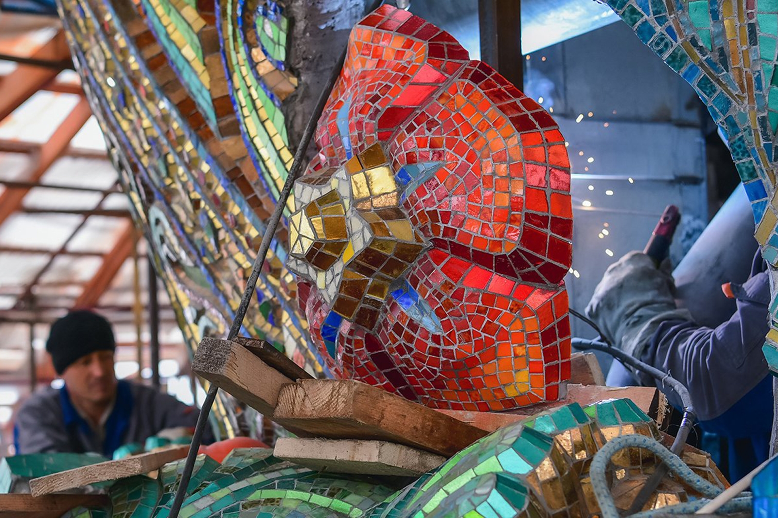 - бетонные детали скульптуры колоса, облицованные смальтой;