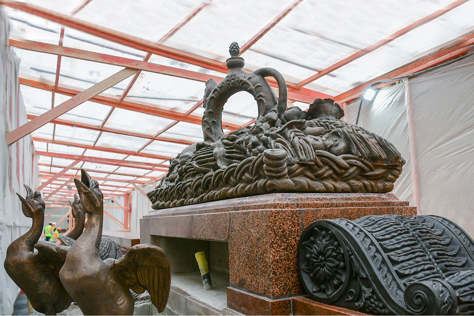Для возвращения исторического облика фонтана реставраторы воссоздали скульптурные элементы, очистили их от загрязнений и восполнили некоторые детали.