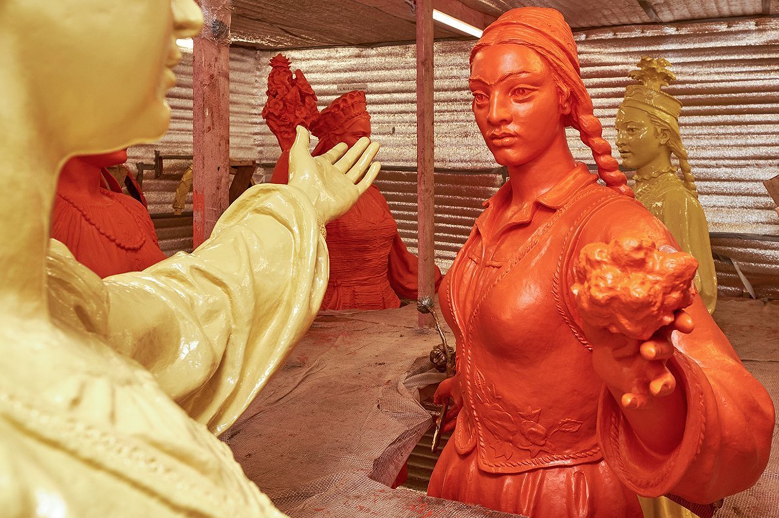 Во время реставрации все 16 фигур были демонтированы, перевезены в мастерскую и восстановлены. Для этого потребовалось 5 кг сусального золота.