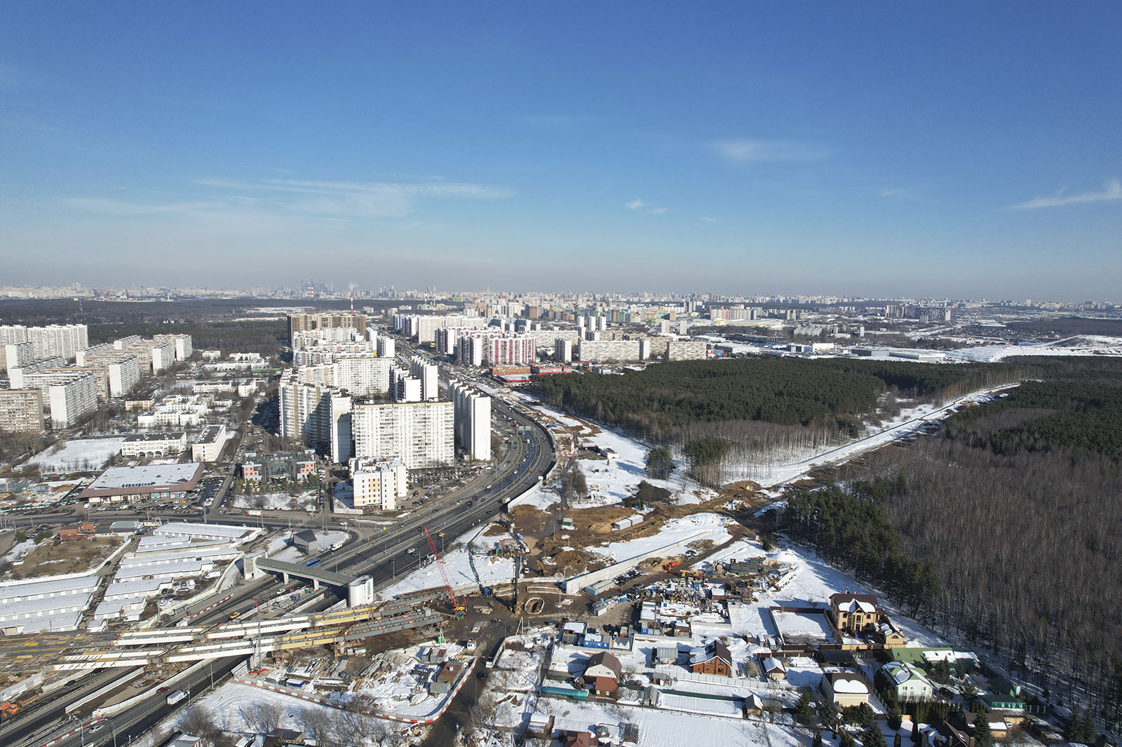 Здесь строят эстакаду над Боровским шоссе, тоннель под Киевским шоссе, путепровод на пересечении с Новоорловской улицей и два подземных пешеходных перехода в районе горнолыжного склона «Ново-Переделкино». Готовность участка составляет 38%.