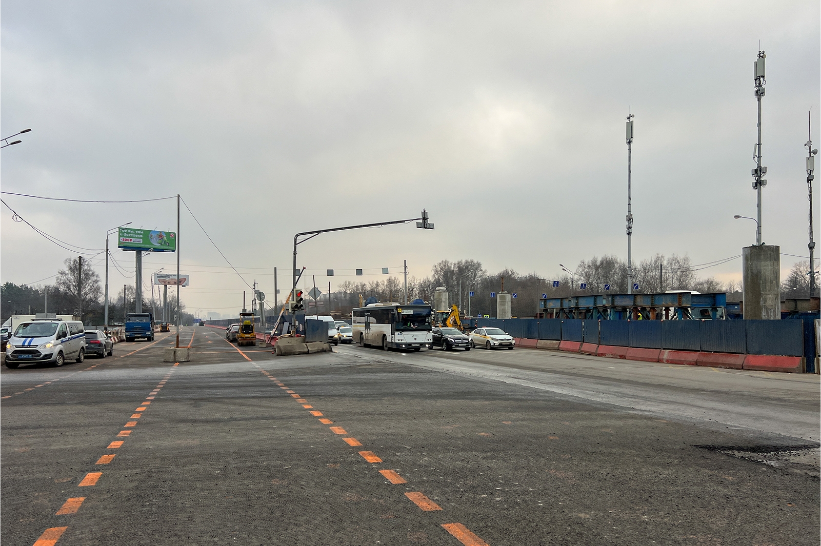 - путепровод длиной 150 м по основному ходу магистрали через ж/д пути второго Московского центрального диаметра (с двумя полосами в каждом направлении);