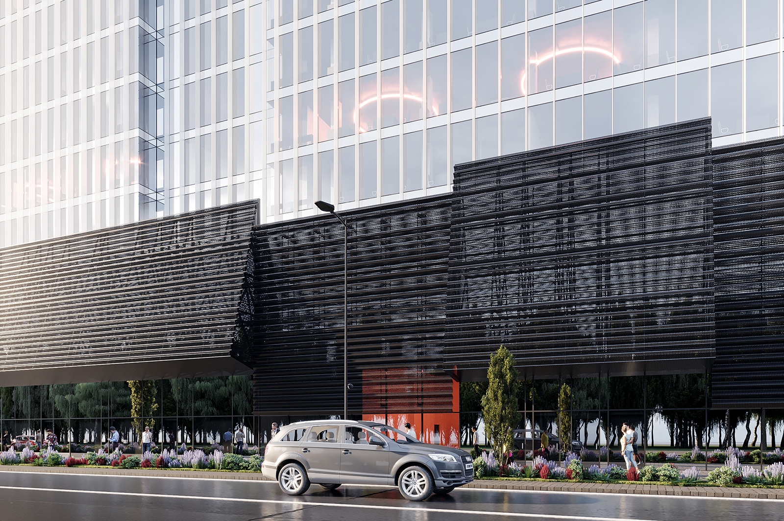 У здания высотой до 60 метров и площадью более 46 кв. метров будет три подземных этажа. Фасад украсят витражи со стеклянными ламелями. Комплекс построят в соответствии со всеми требованиями энергетической и экологической безопасности.