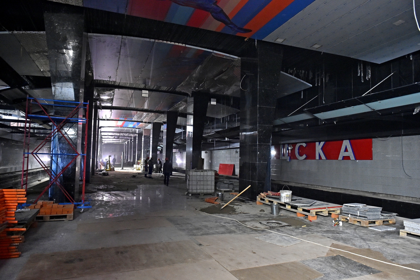 Станция оформлена в фирменных цветах футбольного клуба ЦСКА - красном и синем. На потолке - изображения, посвященные различным видам спорта.