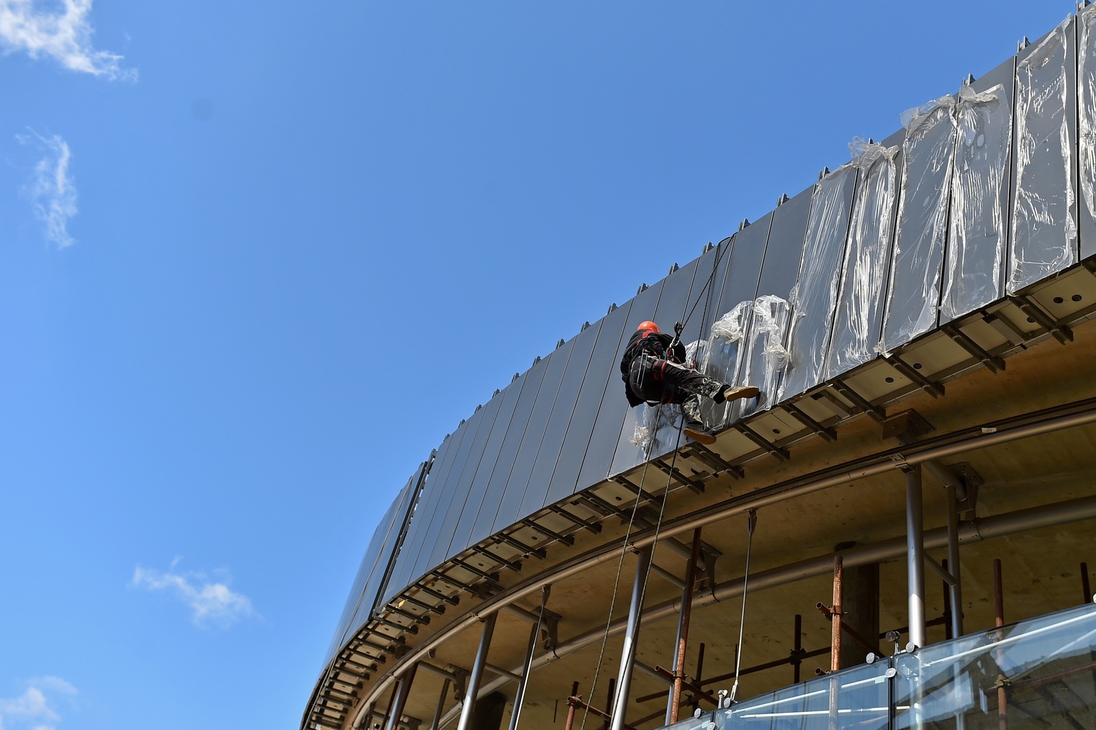 Главным украшением станут бронзовые скульптуры лыжника, баскетболиста, хоккеиста и футболиста, созданные студией военных художников имени М.Б. Грекова. Сейчас идет их установка.