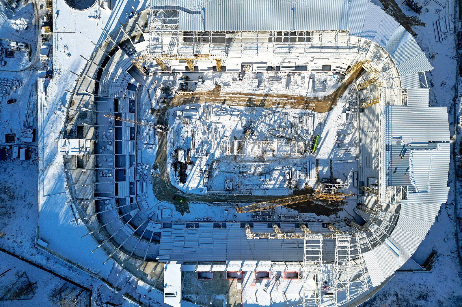 Стадион находится на ул. Восточная в Даниловском районе. Сейчас объект готов на 30%: здесь завершены монолитные работы, стартовало обустройство кровли и фасада. Также началась прокладка наружных инженерных сетей и монтаж металлоконструкций.