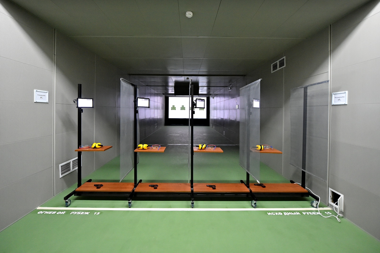 Для проведения учебно-тренировочных занятий по стрельбе больше не придется выезжать на специализированные полигоны: в новом здании есть тир с огневыми рубежами до 25 метров для стрельбы из положений лежа, с колена и стоя.