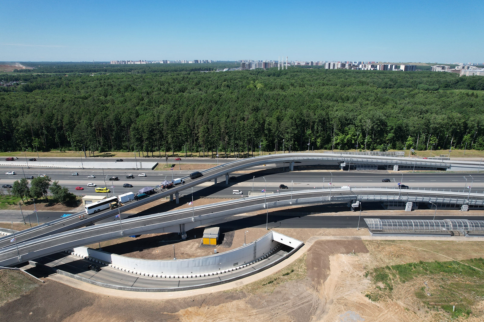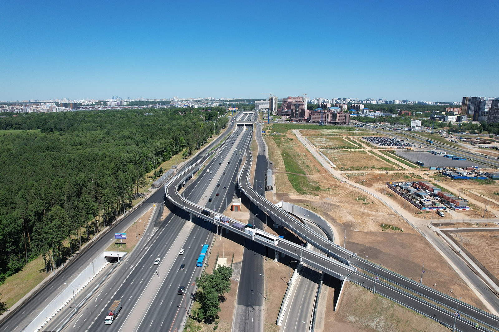 1 июля также были открыты две эстакады общей длиной около 490 метров, которые обеспечат съезд с Калужского шоссе в сторону Коммунарки и выезд из Коммунарки на Калужку.