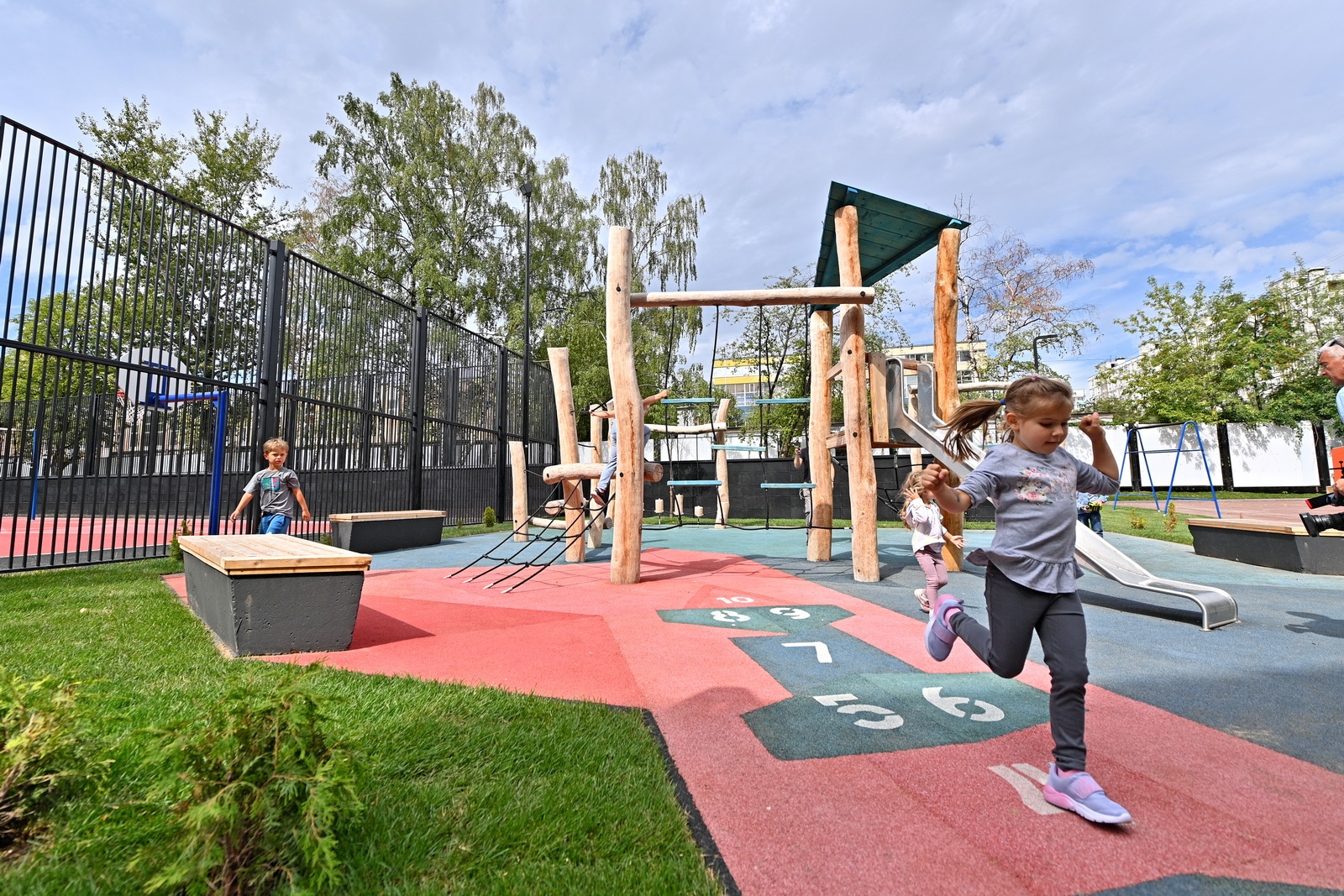 На прилегающей территории создан амфитеатр, оборудованы игровые и спортивные площадки, беседки для тихого отдыха, парковки для велосипедов и самокатов. Сохранены старые деревья, разбиты новые газоны и цветники.