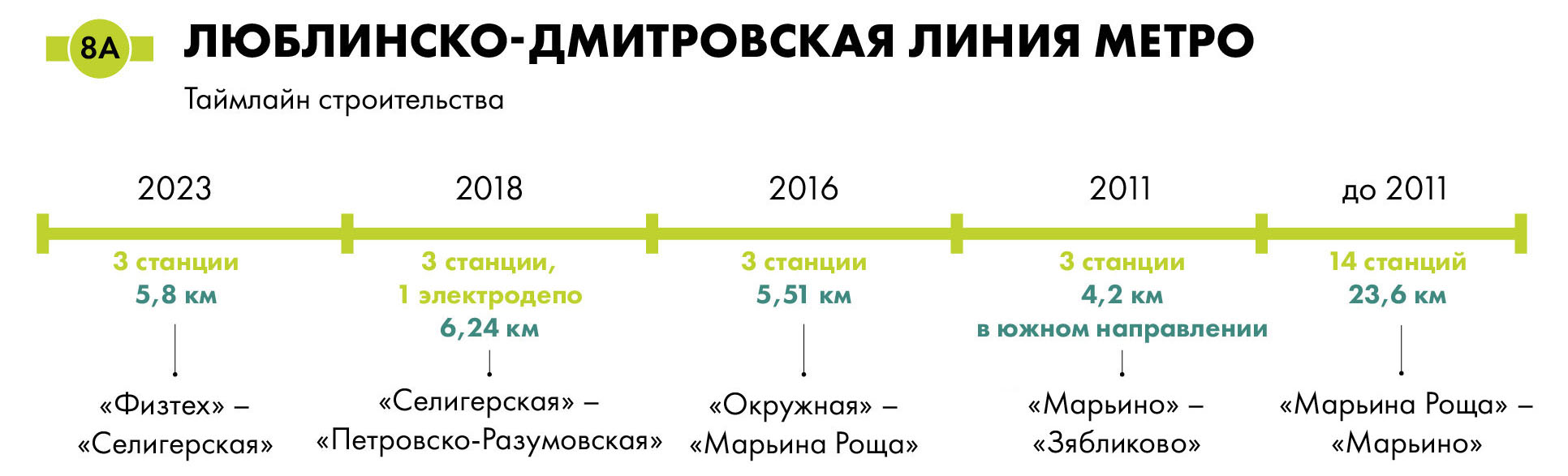 После ввода северного участка в составе Люблинско-Дмитровской линии метро работает 26 станций, а ее эксплуатационная длина превысила 43 км. Так, она стала второй по протяженности среди радиальных линий столичной подземки после Арбатско-Покровской.