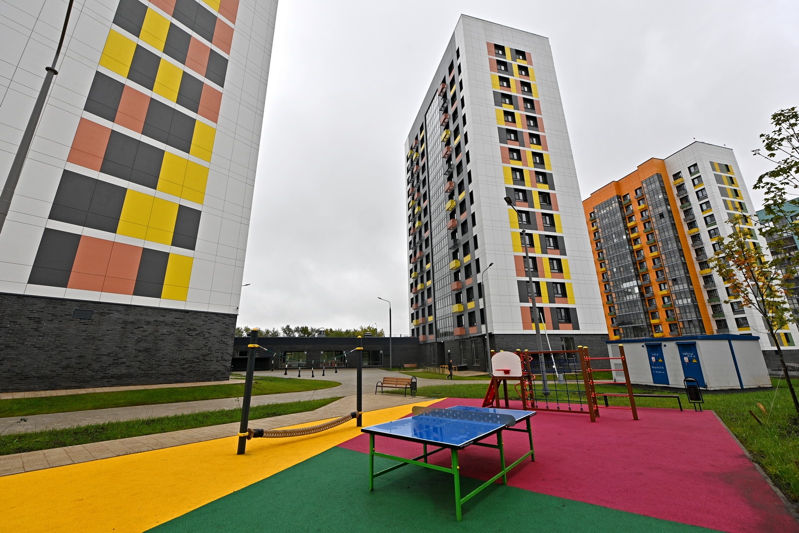 В прогулочных зонах устанавливают фонари, лавочки и урны, разбивают клумбы, высаживают деревья и кустарники. В новых кварталах найдется место и для тихого отдыха, и для активных занятий спортом.
