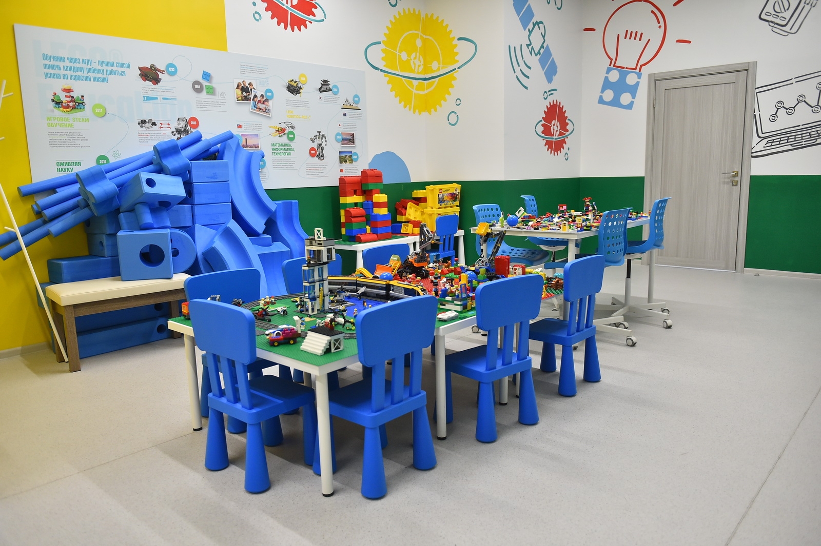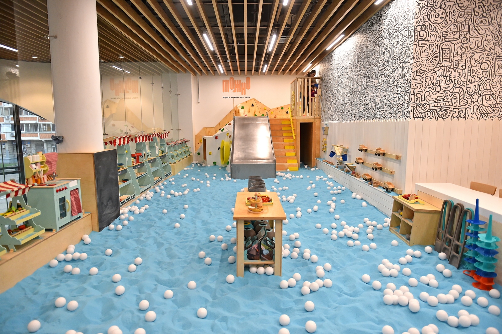 Для малышей от 0 до 5 лет обустроили песочницу площадью 80 кв. метров с гипоаллергенным бирюзовым кварцевым песком, где будут проходить активные игры под присмотром педагогов.