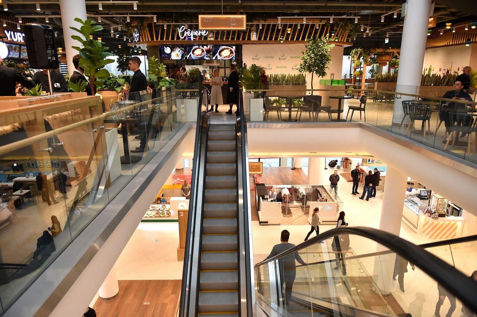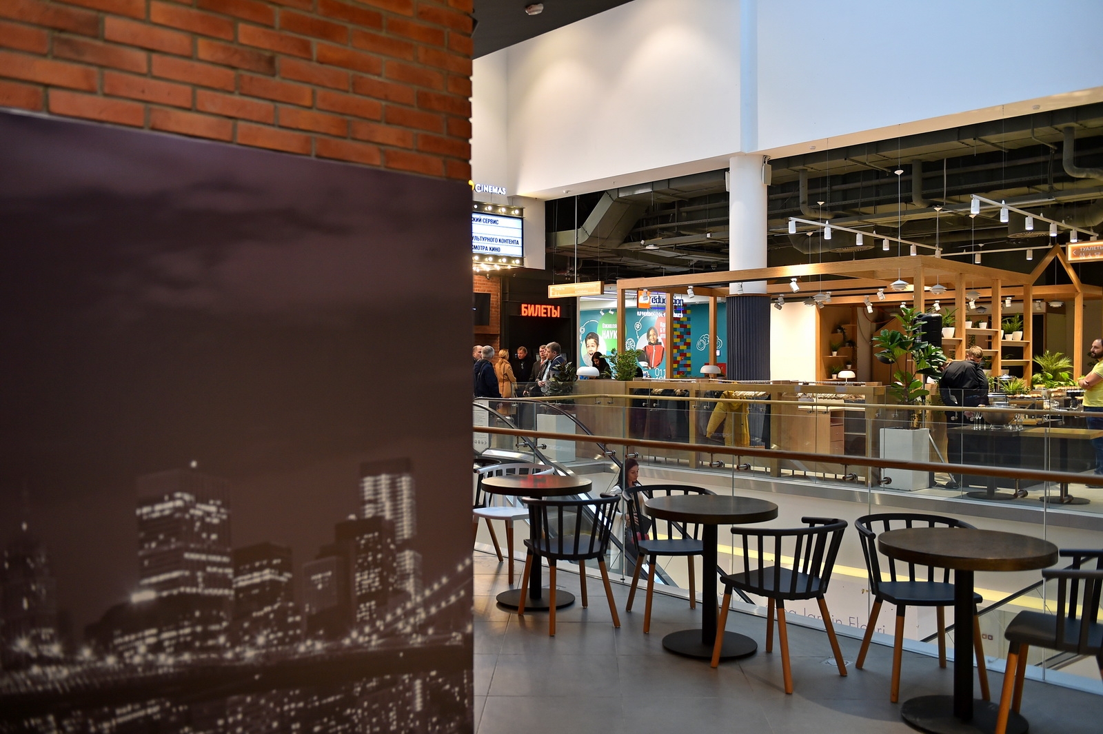 На третьем этаже находится фудхолл из 15 гастрономических корнеров на 243 места. Здесь есть бургеры, пицца и паста, грузинская, бурятская, паназиатская, индийская, немецкая, французская кухни, смузи бар, десерты и кофе, поке и боулы, пивной бар. Каждый найдет еду по вкусу.