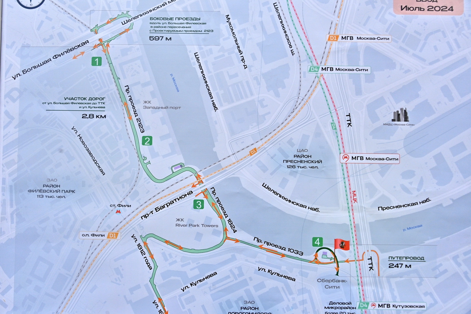 В ходе работ возведут путепровод со съездом с ТТК и Проектируемого проезда №1033 к бизнес-центру «Сбербанк Сити» длиной 247 м, проложат улично-дорожную сеть длиной 2,7 км – участки Проектируемого проезда №2123 от ул. Большая Филёвская до Проектируемого проезда №1824, Проектируемого проезда №1824 от Проектируемого проезда №2123 до ул. 1812 года, Проектируемого проезда №1033 от Проектируемого проезда №1824 до ТТК и ул. 1812 года от ЖК River Park Towers Кутузовский до ул. Кульнева.