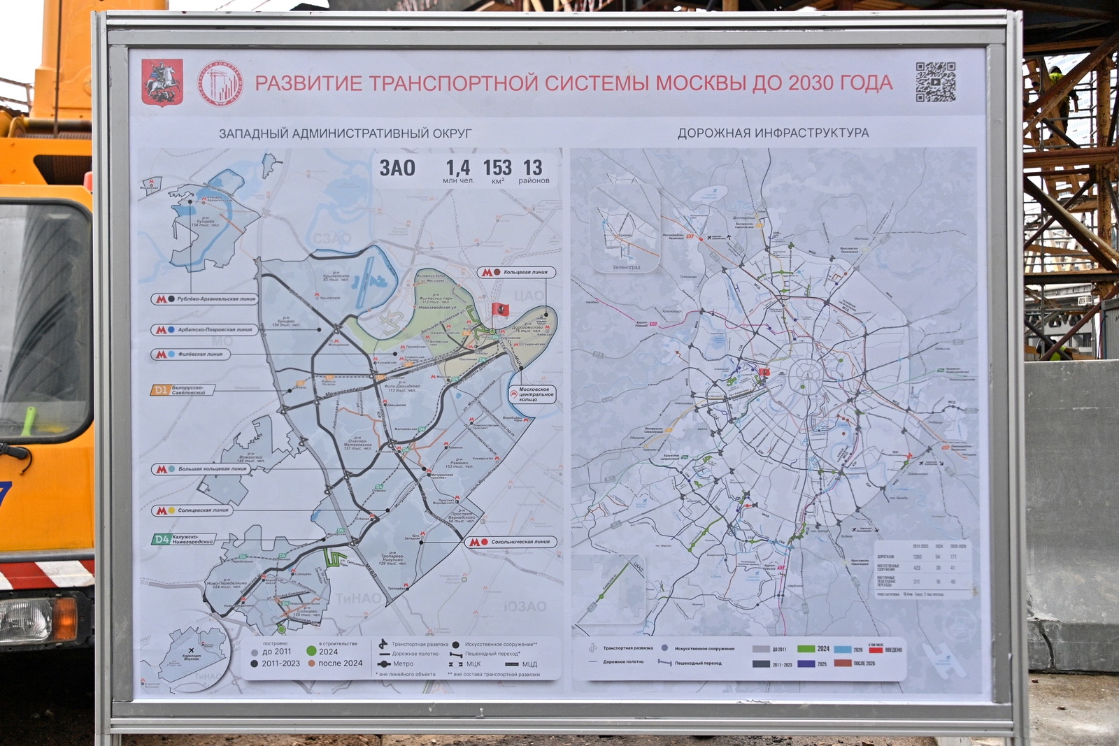 Сейчас строят и проектируют около 40 км дорог, в том числе вдоль набережной Москвы-реки на участке от ул. Большая Филёвская до ТТК, участок Проектируемого проезда №2017 от ул. Большая Филёвская до Берегового проезда, транспортные развязки на территории Мнёвниковской поймы в районе примыкания к Северо-Западной хорде.