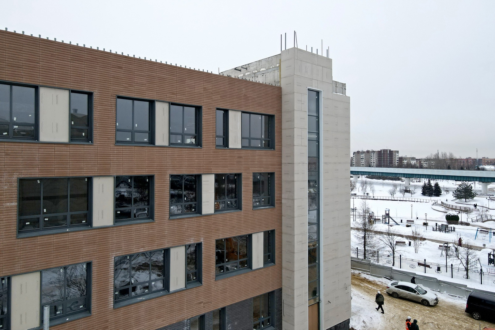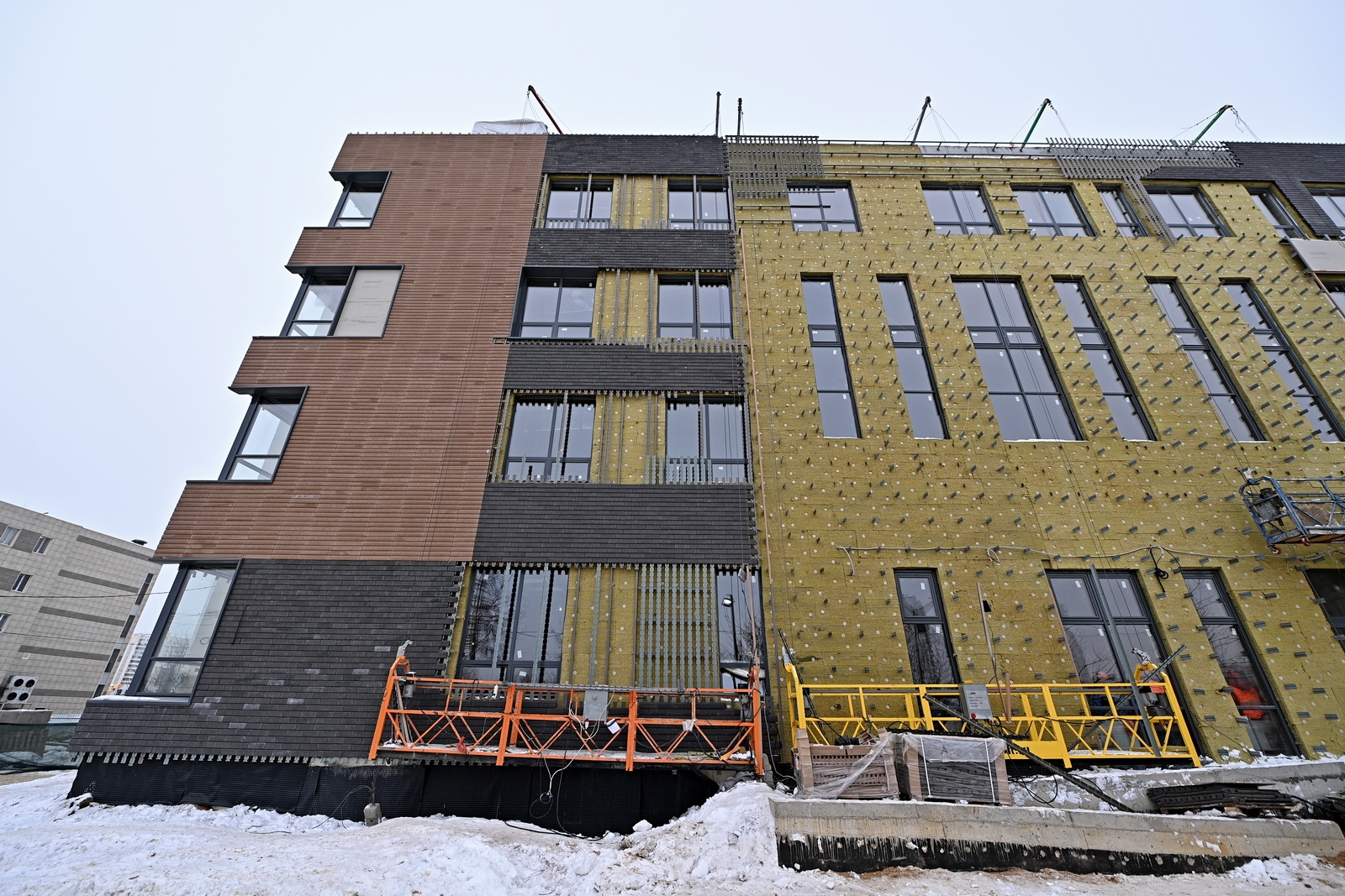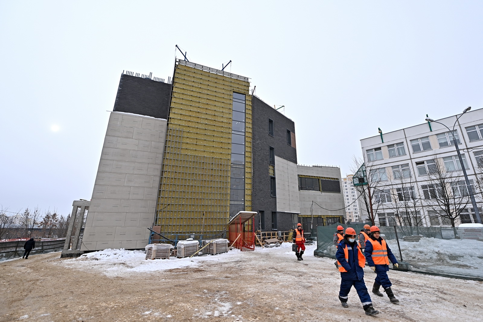 Вдоль фасадов нового учебного корпуса появятся площадки для тихого отдыха и проведения школьных линеек. Также здесь разобьют клумбы, цветники и газоны, высадят деревья и декоративные кустарники. К работам по благоустройству планируется приступить весной, а завершить строительство школы – к началу учебного года.