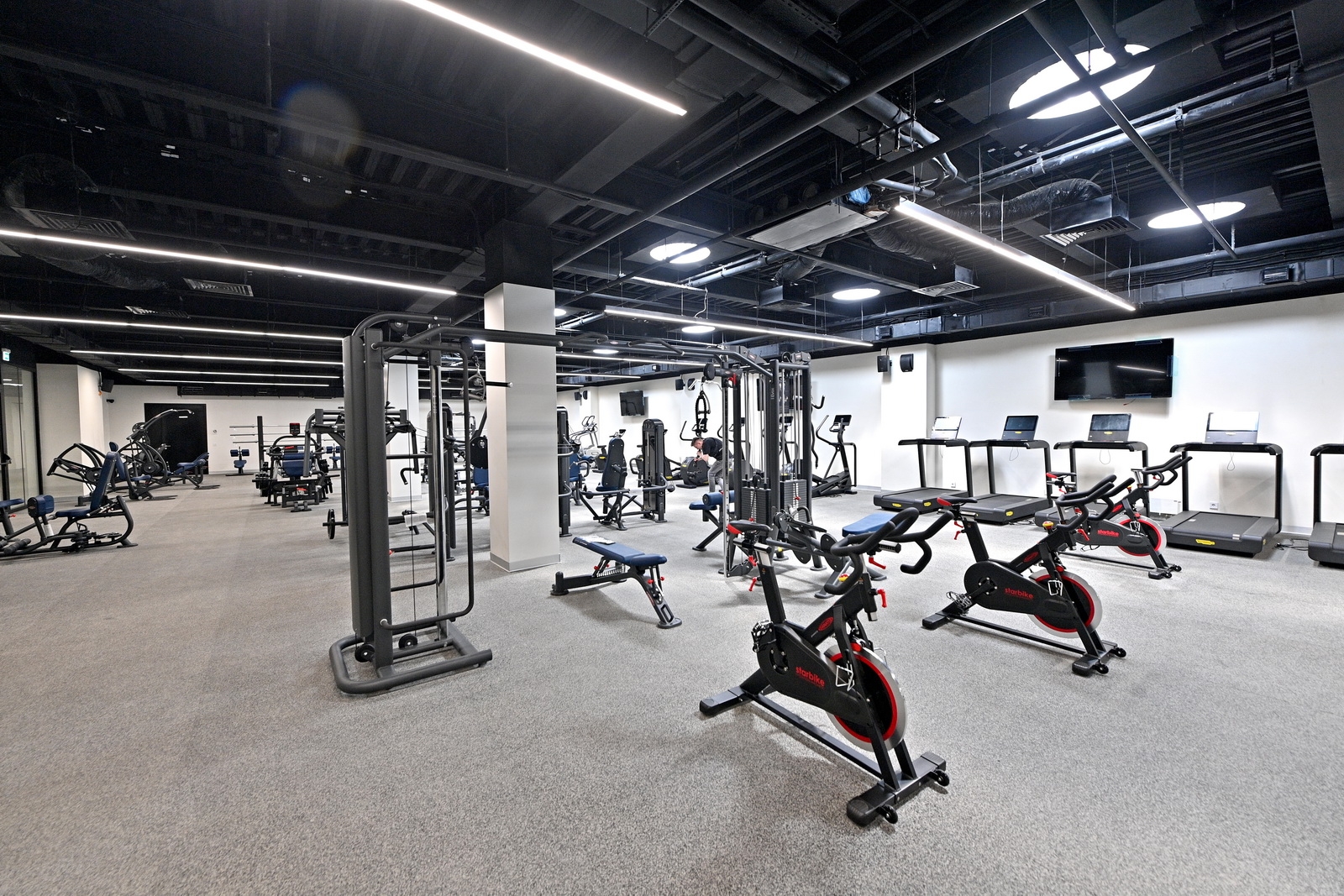 В каждом центре есть два идентичных тренировочных зала – на три борцовских ковра и три ринга. Их особенность − в витражном остеклении высотой 18 метров, а также в наклонном зеркальном потолке, который позволяет видеть тренирующихся спортсменов с улицы.